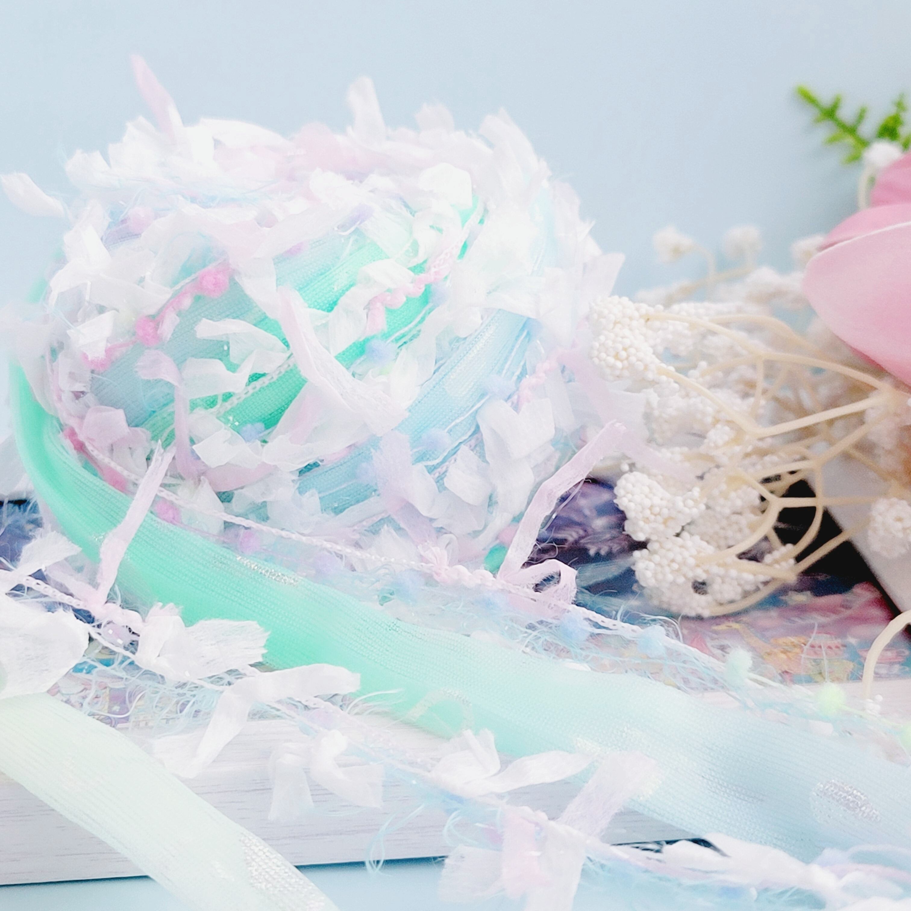 チュール入り引き揃え糸(297) 20g オーロラハートチュール 手染め糸