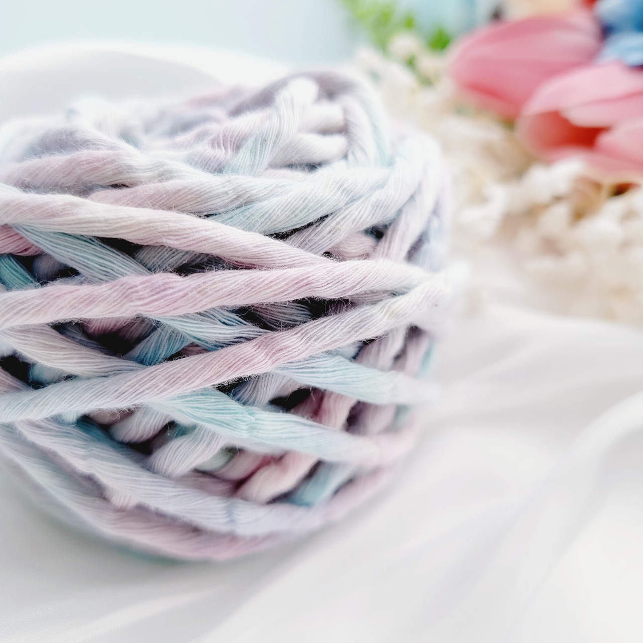 ふんわりとした夢色に心ときめく、手染めマクラメ糸です。