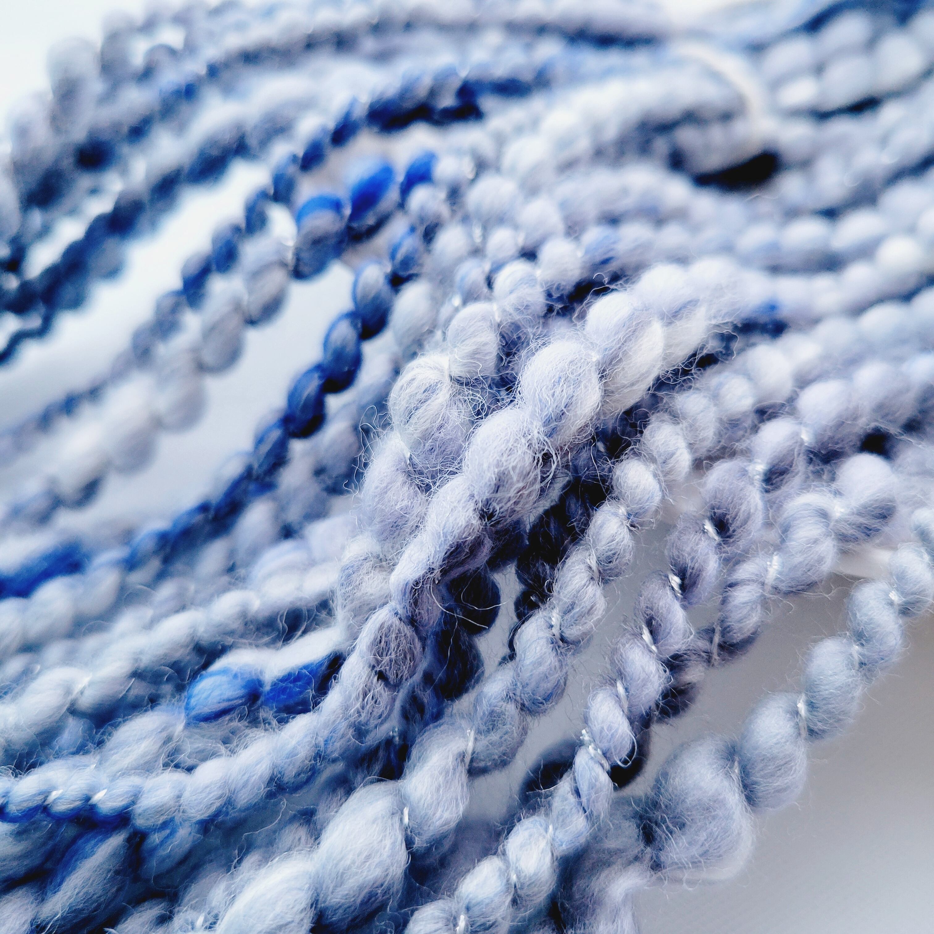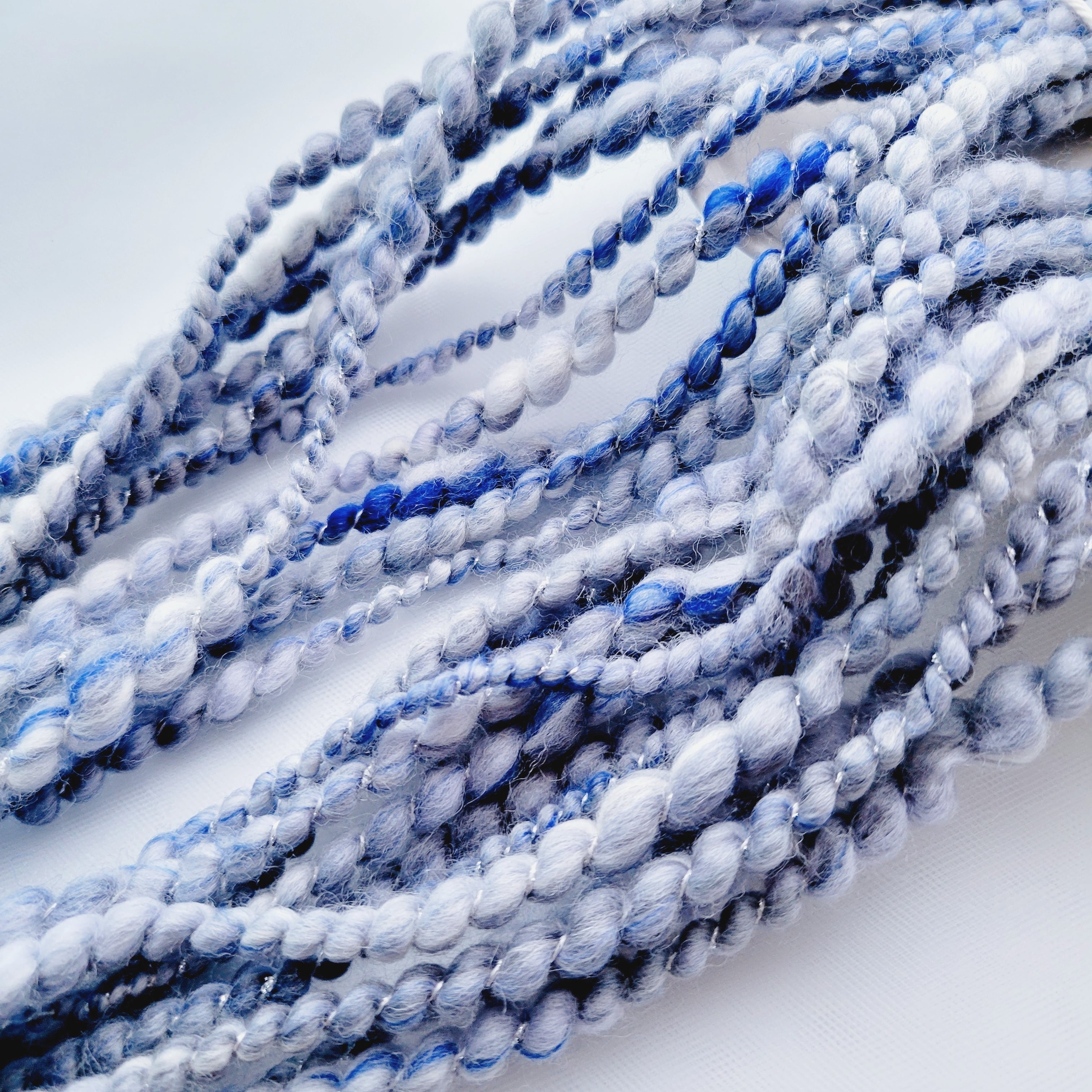 midnight line の手紡ぎ糸は、染め羊毛をブレンドし、