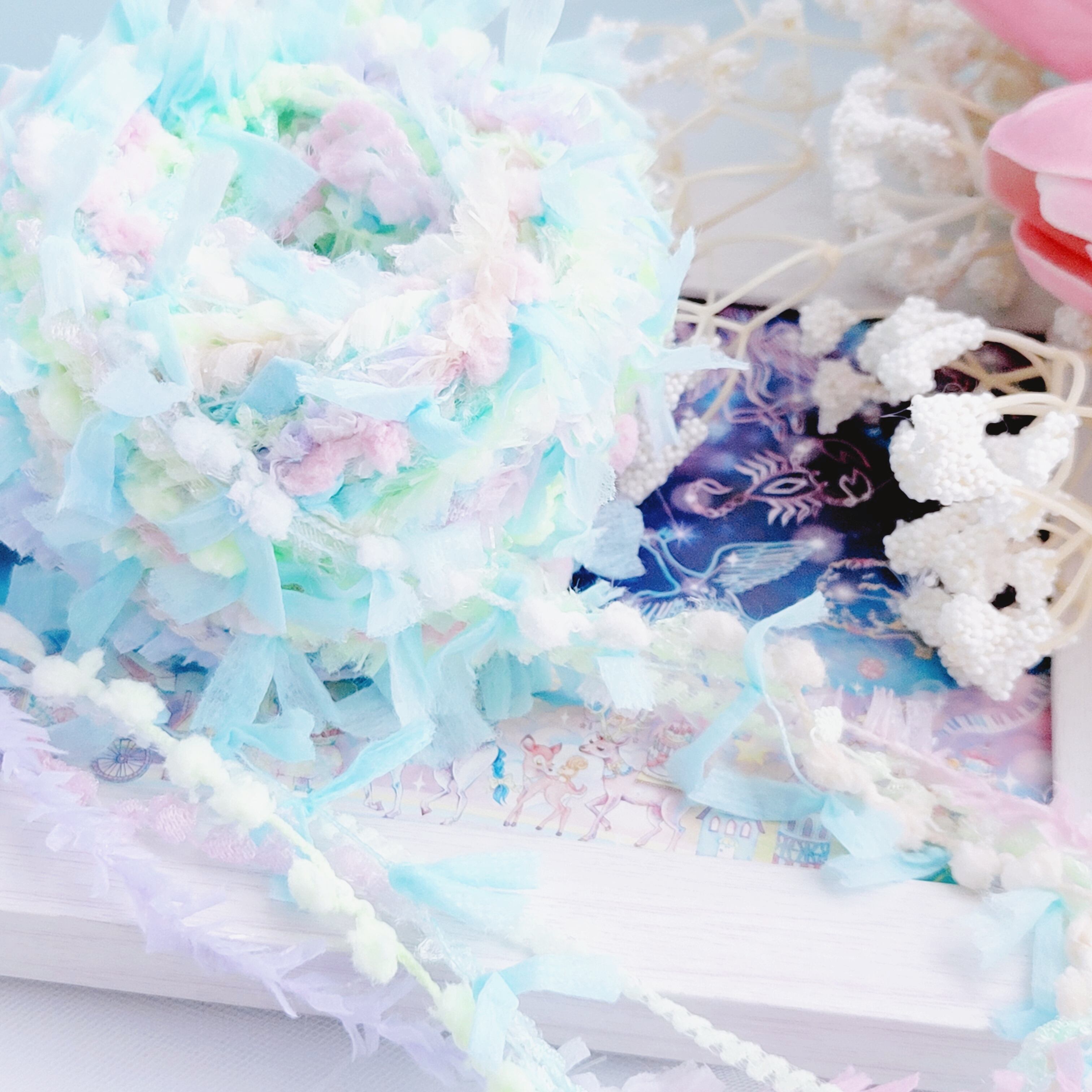 リボン、ふわもこ素材など、素材たちはまるで魔法道具みたい。
