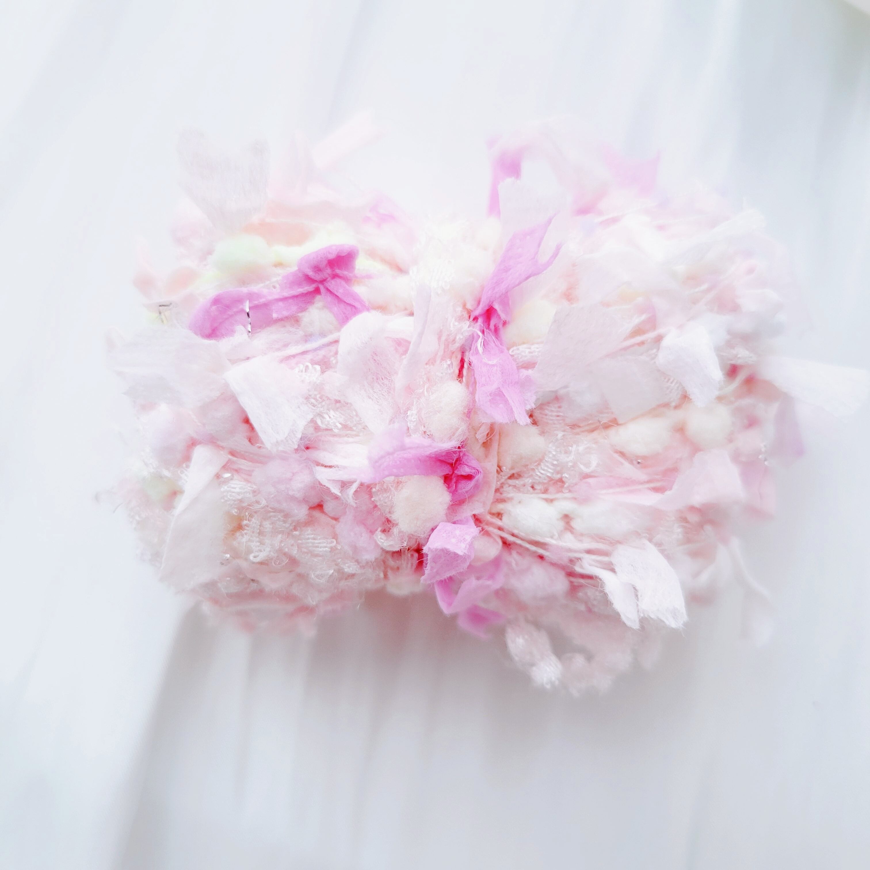 特別なチュールやファンシーヤーンを贅沢に重ねた“小さな主役”。
