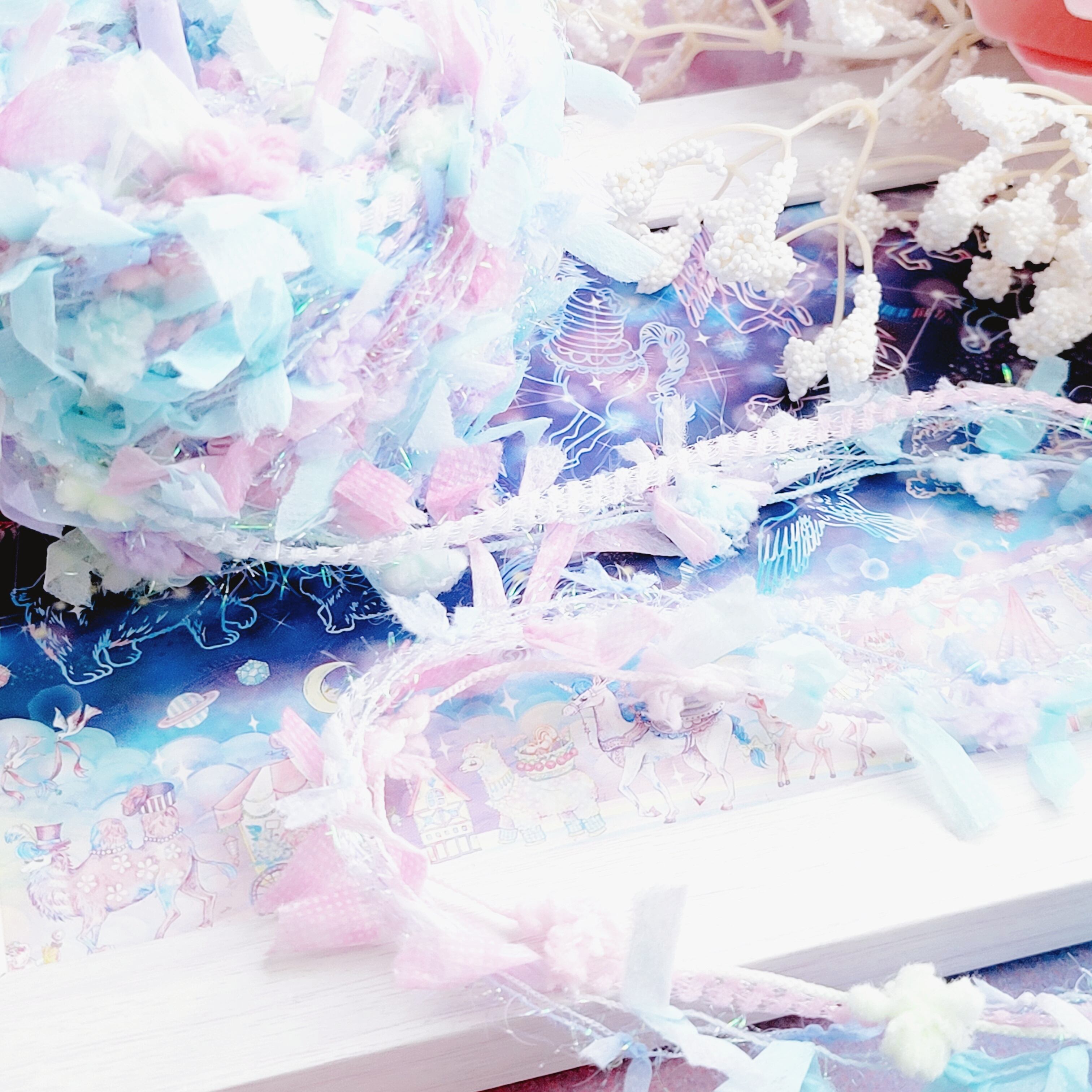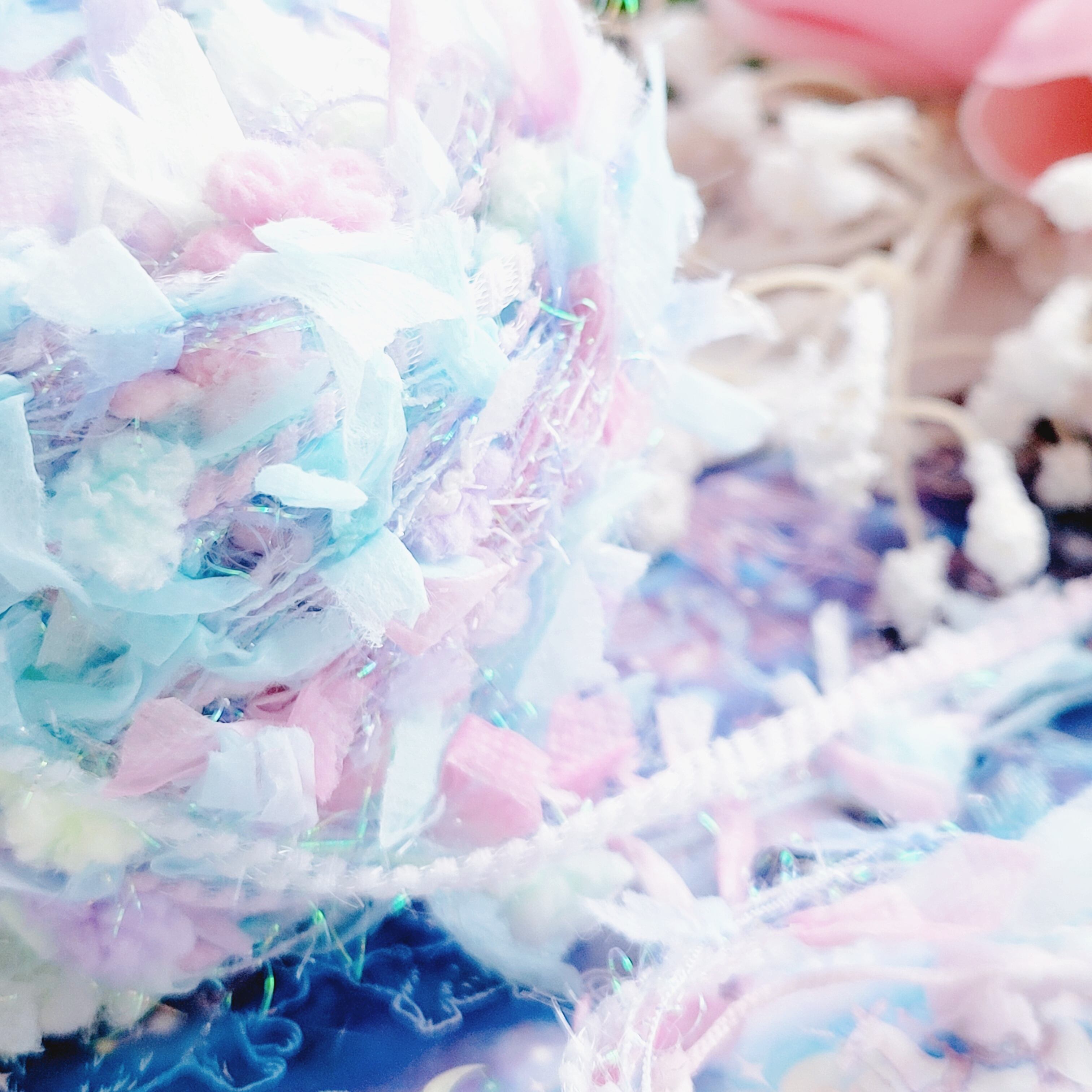 水色とピンクを主役に、パステルの夢がとけあうような色合わせ。