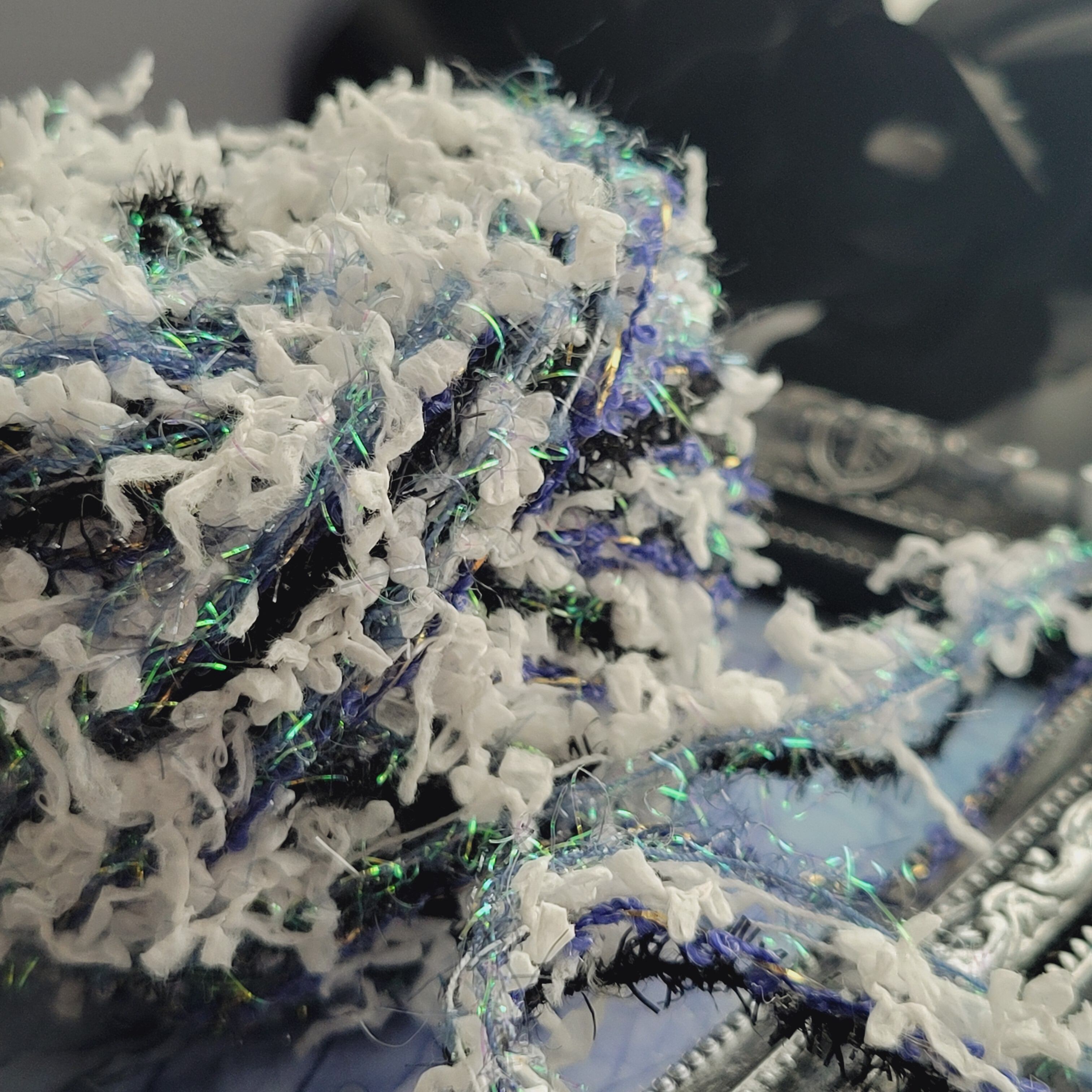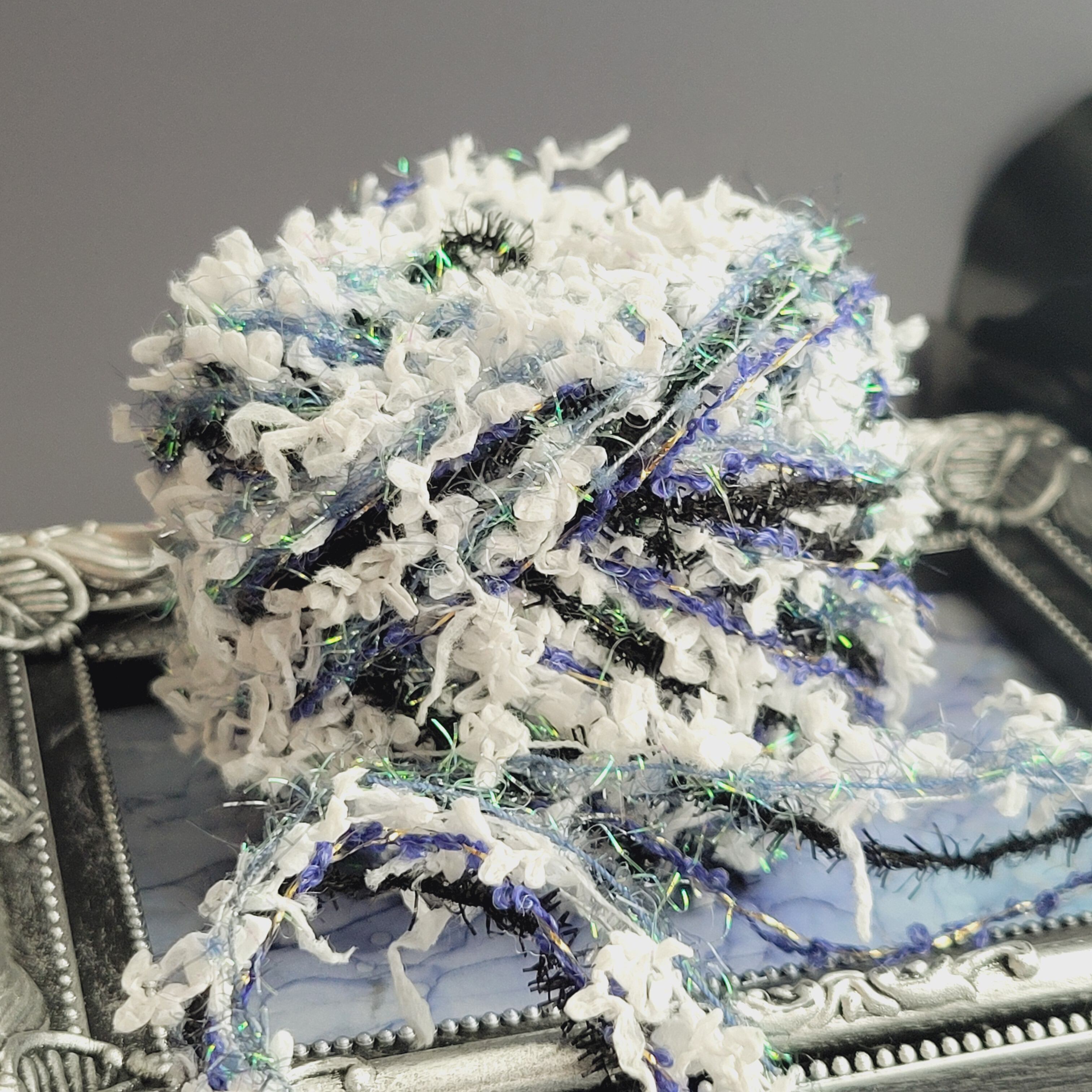 柔らかいファンシーヤーンやレースリボンなど、