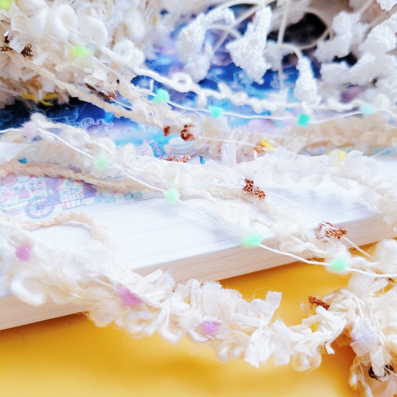 ふわふわの質感と、キラキラの光をまとった5本の魔法の糸たち。