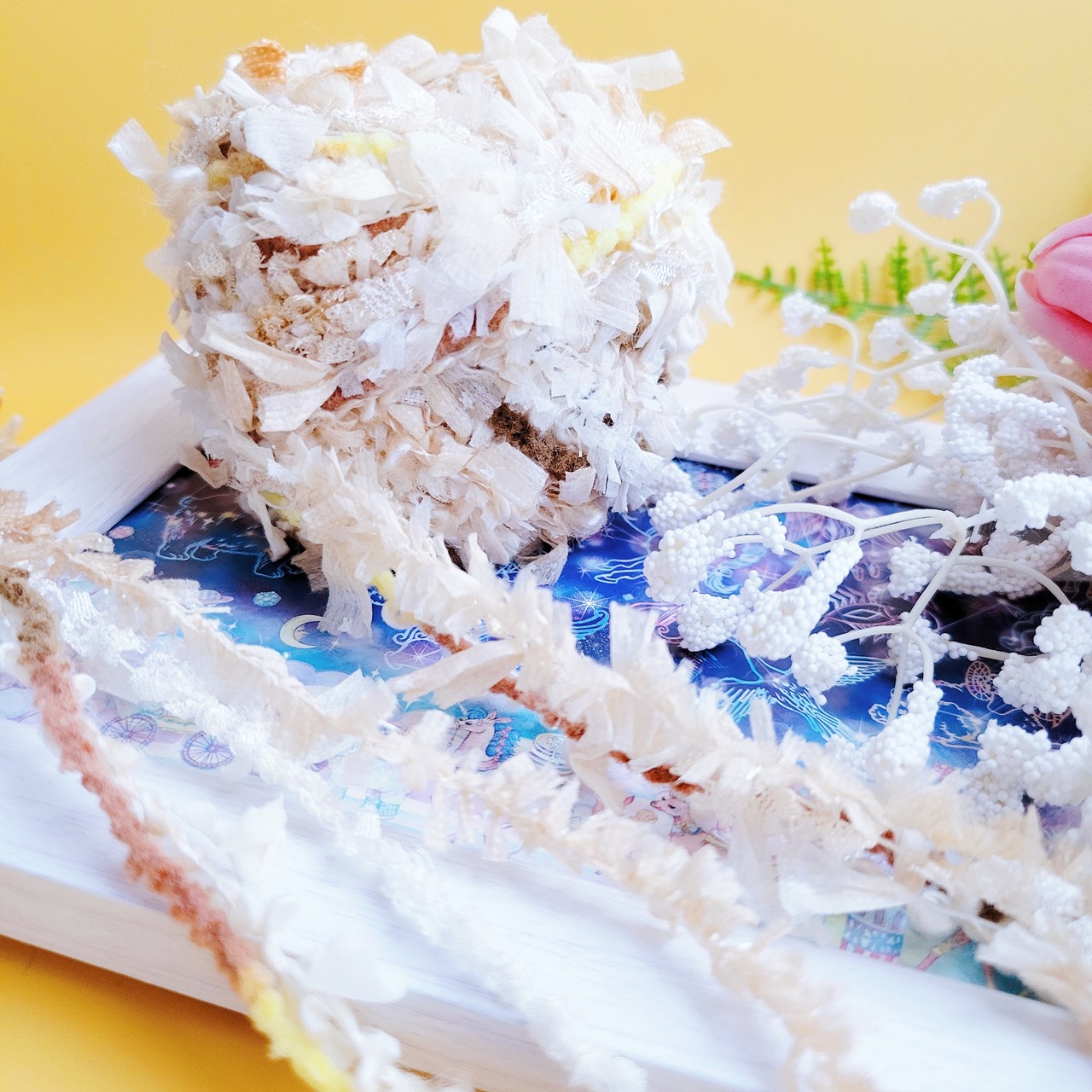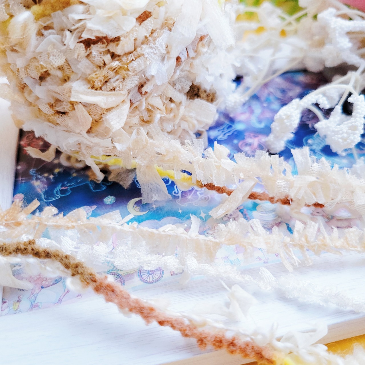 ふわふわの質感と、キラキラの光をまとったゆめの国の妖精たちが集めた、5本の魔法の糸。