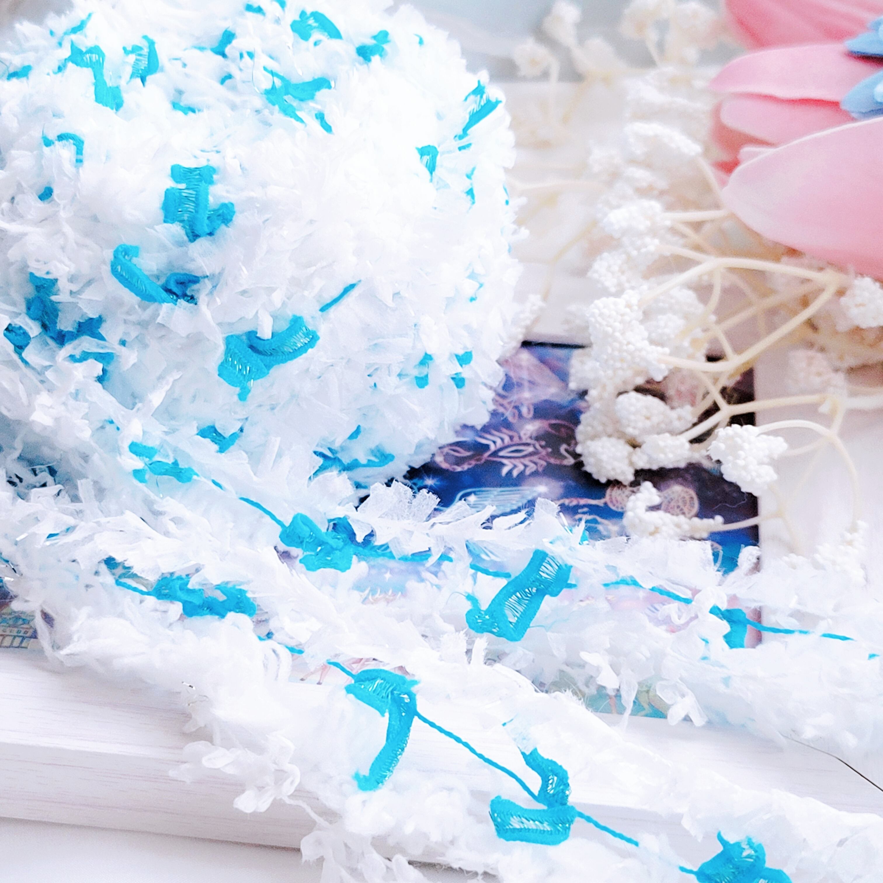柔らかい白糸に、ぽんぽんやリボン、光る糸をほんのり添えて