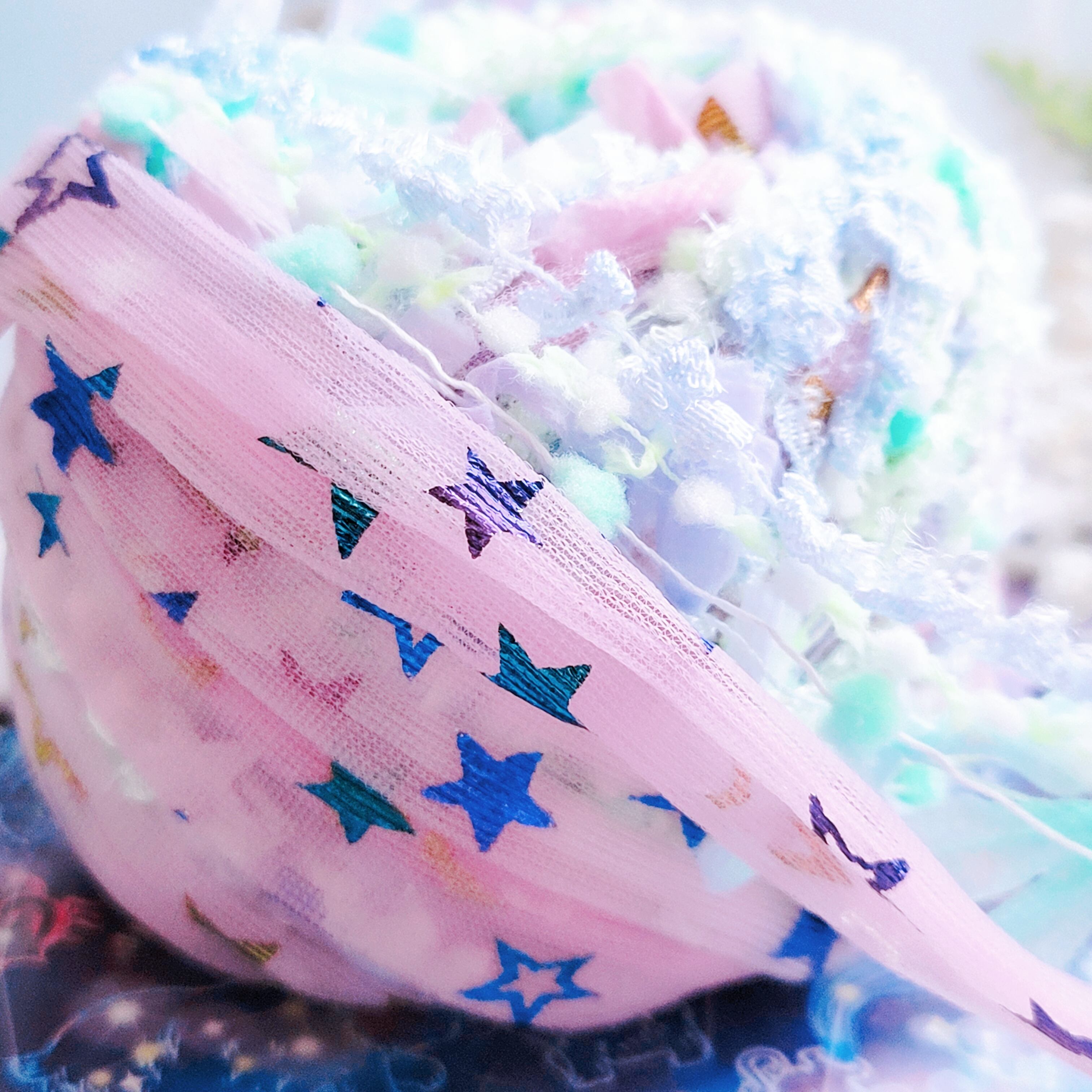 きらめくチュール、レース、フリル、手紡ぎ糸…