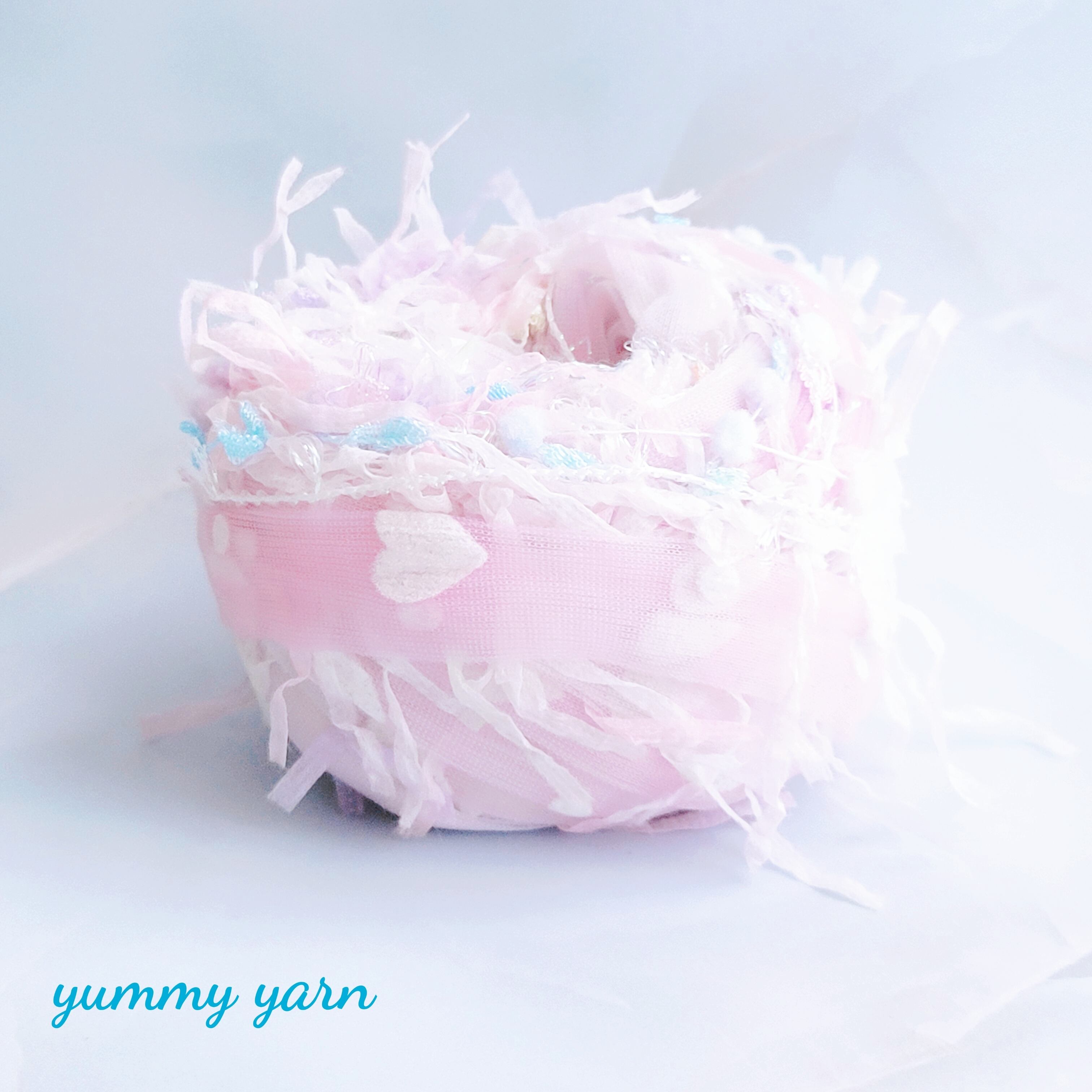 引き揃え糸(384)20g フロッキーハートドットチュール プレシャスライン 手染め糸 ピンク