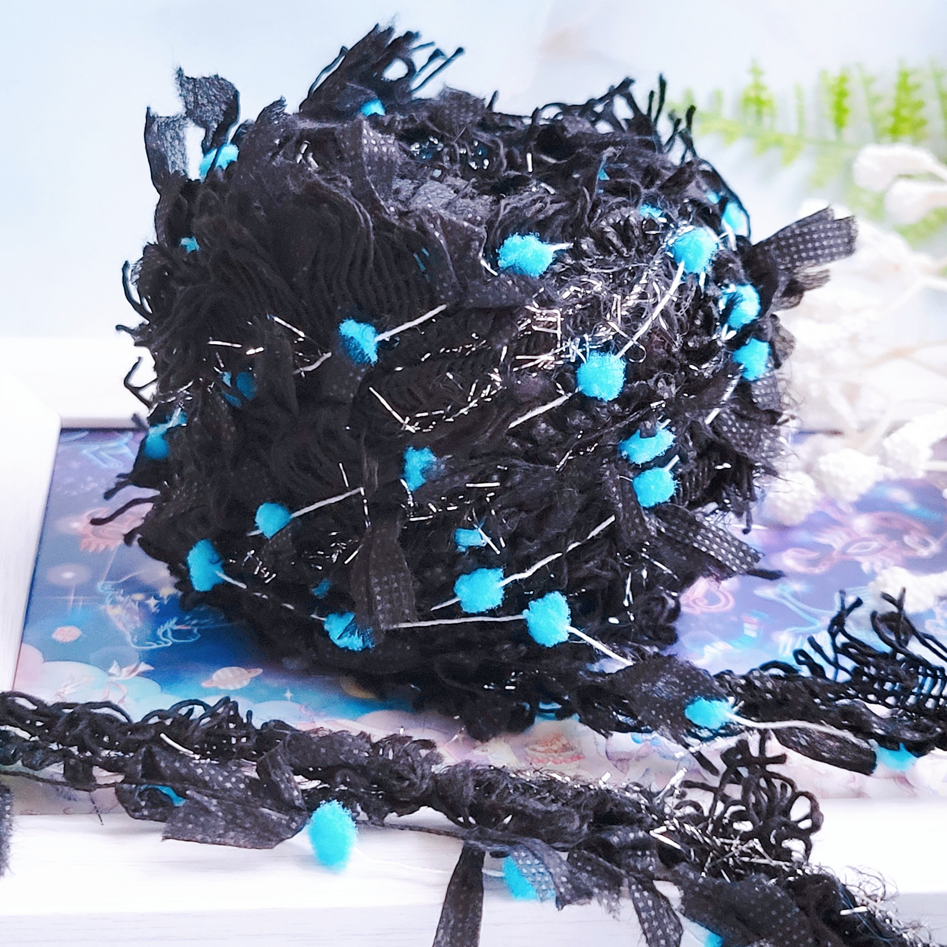 引き揃え糸(392)20g MidnightLine マスカレードワルツ 黒ブルーシルバー ラッピング クリスマス