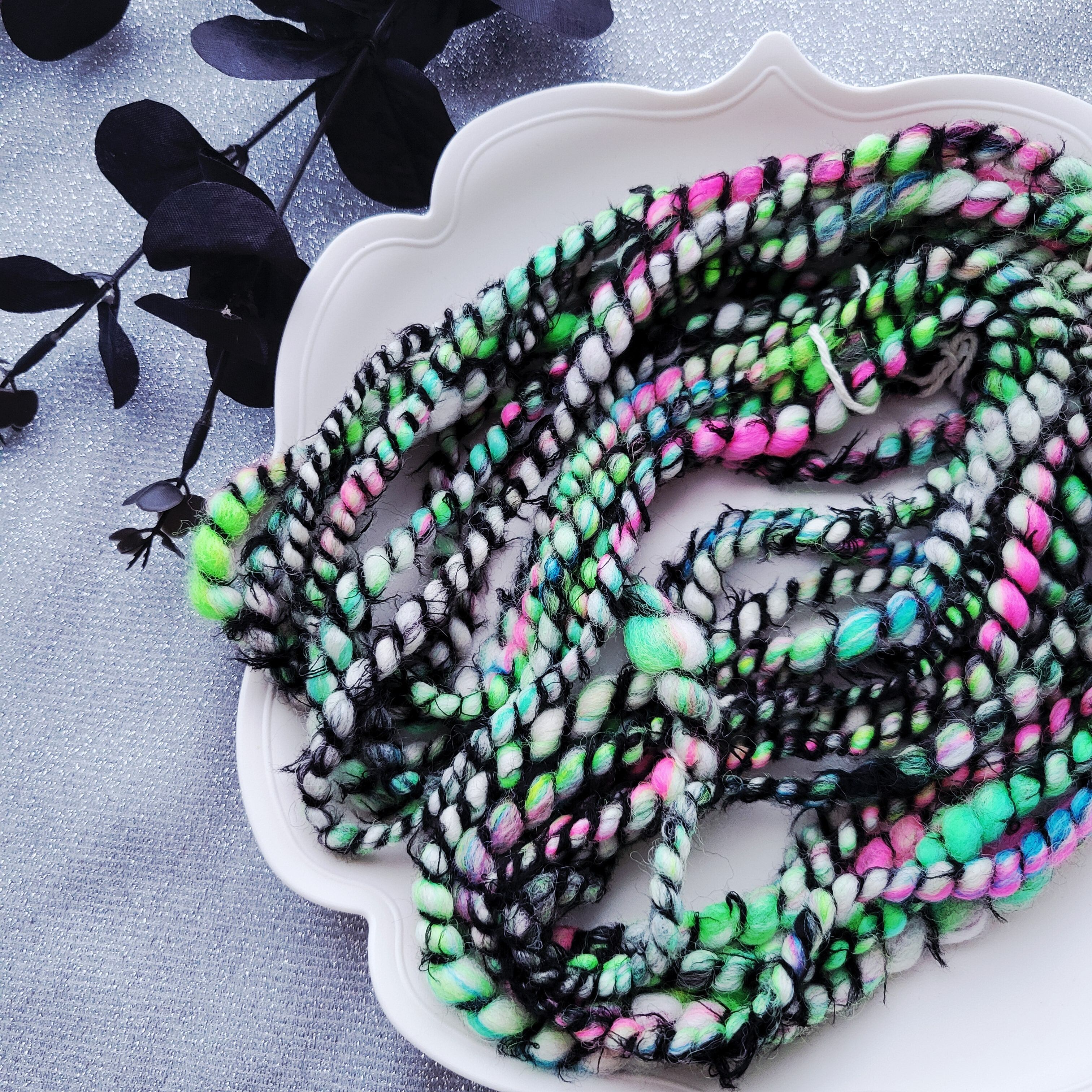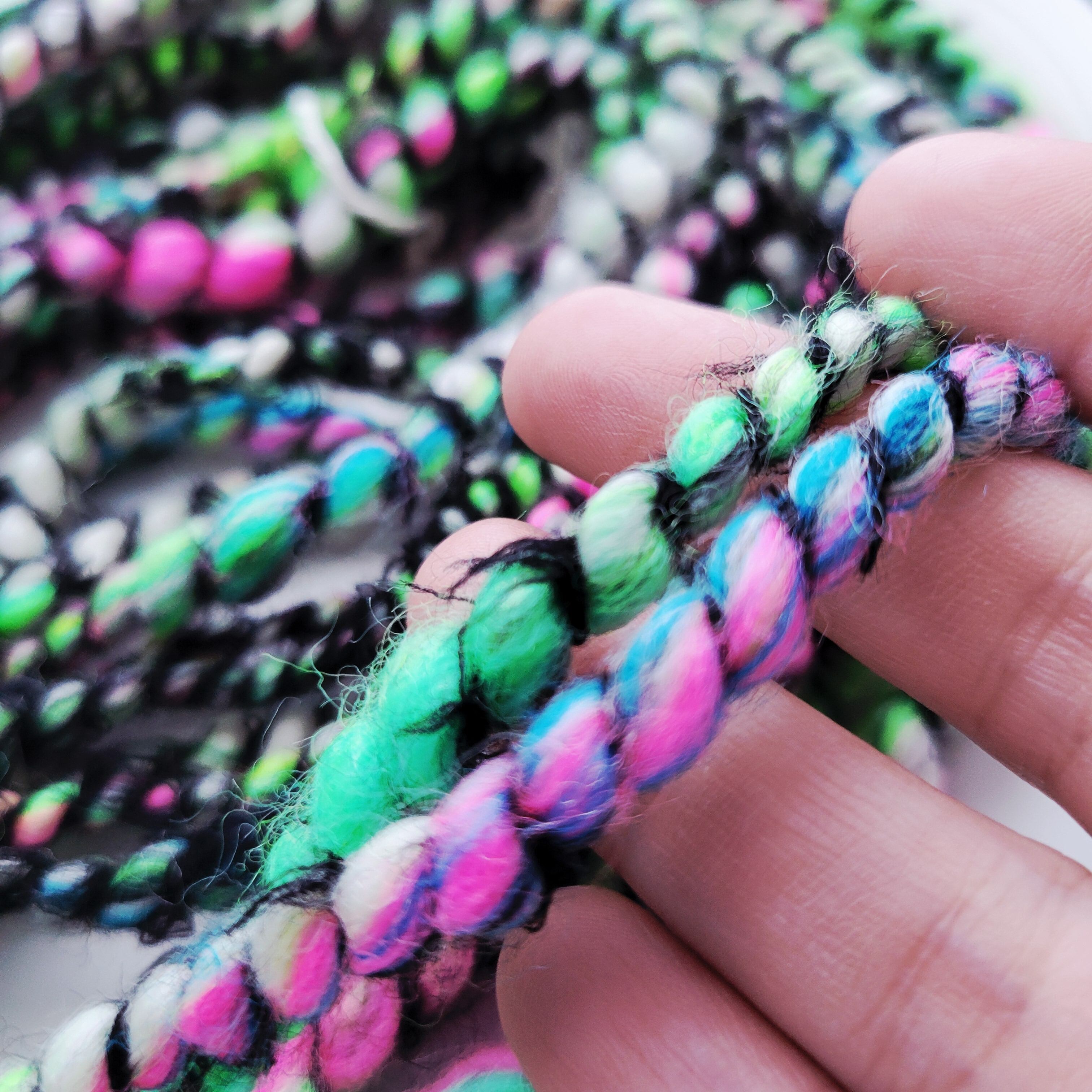 ・手紡ぎならではのムラや凹凸、太さの変化があります。