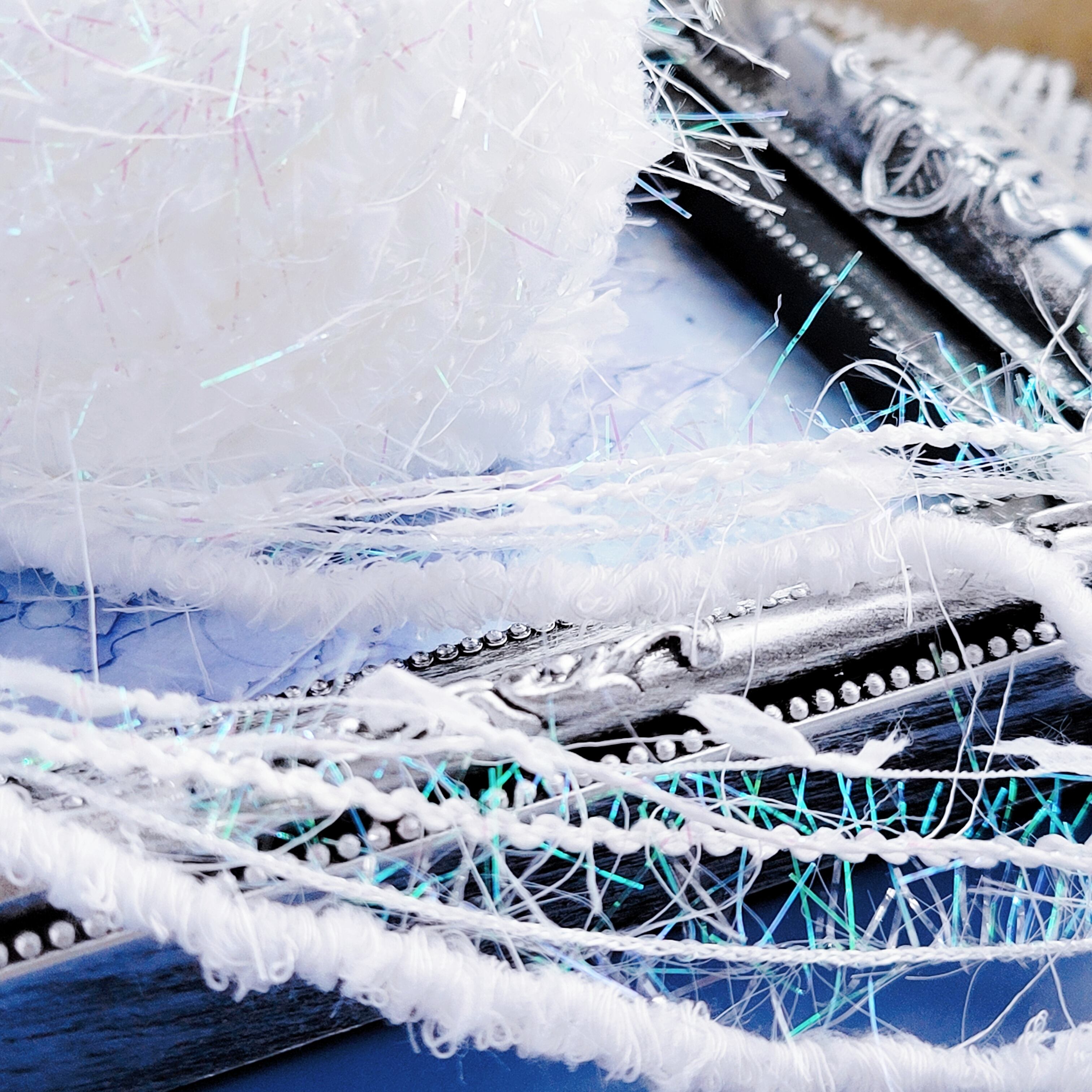 ふんわりとした質感と、チュール、ラメ、レースのきらめきは、