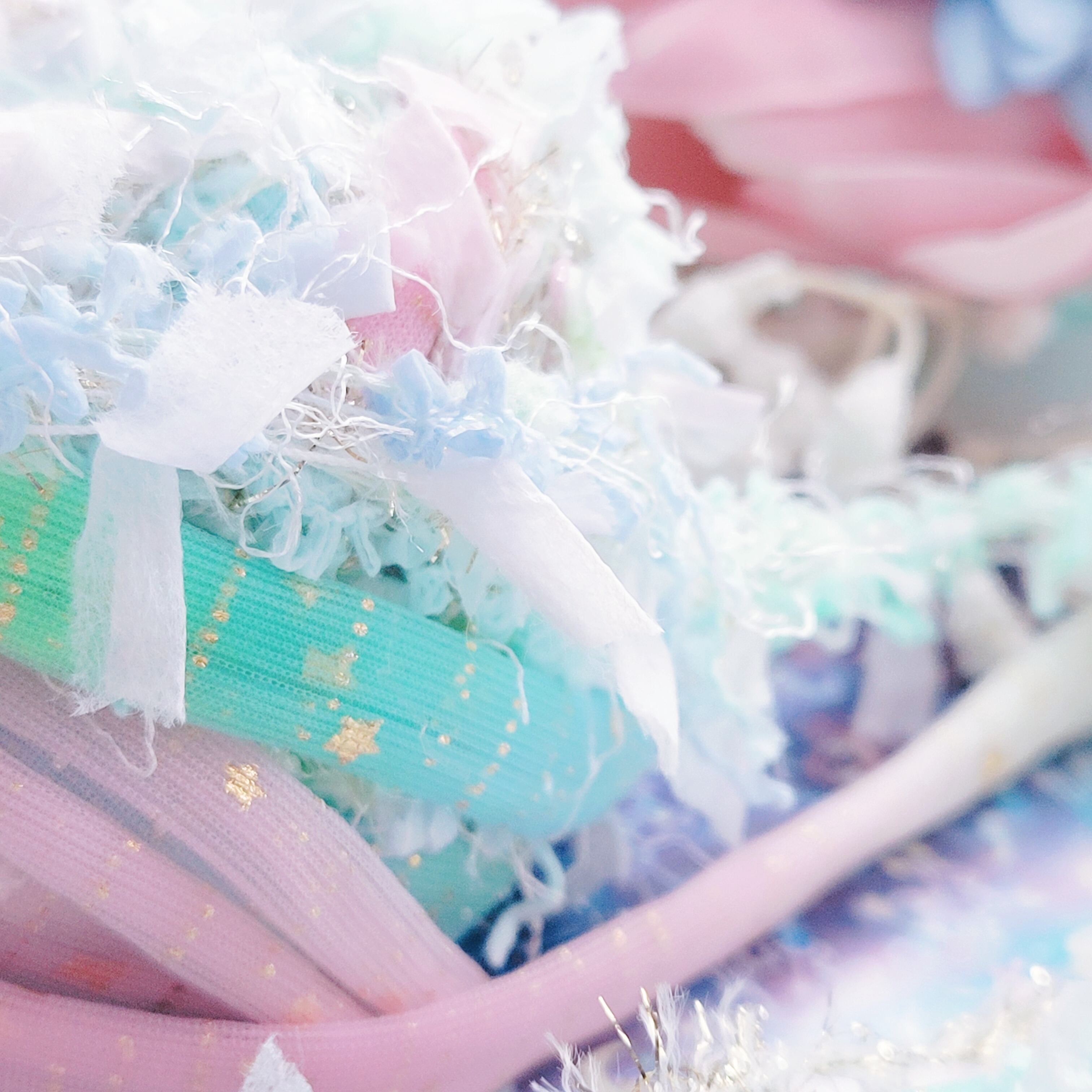 きらめくチュール、レース、フリル、手紡ぎ糸…