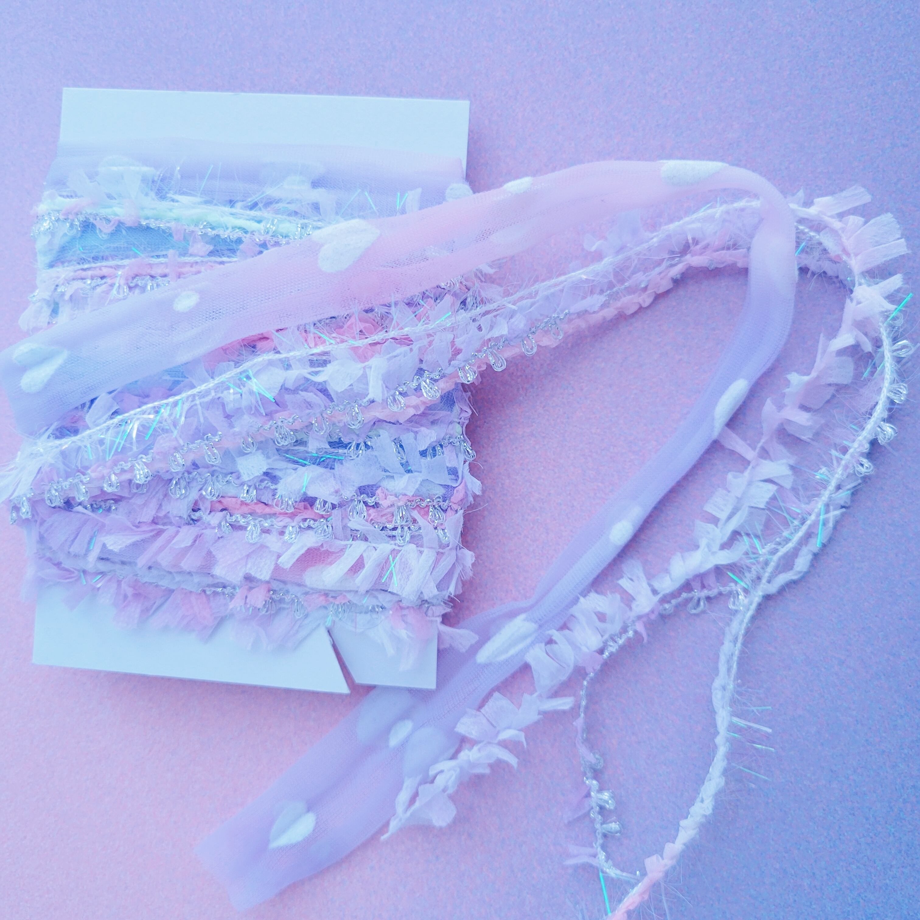 チュール入り引き揃え糸(78)3m フロッキーハートドット ピンクパープル 手染め糸 TwilightChocolat