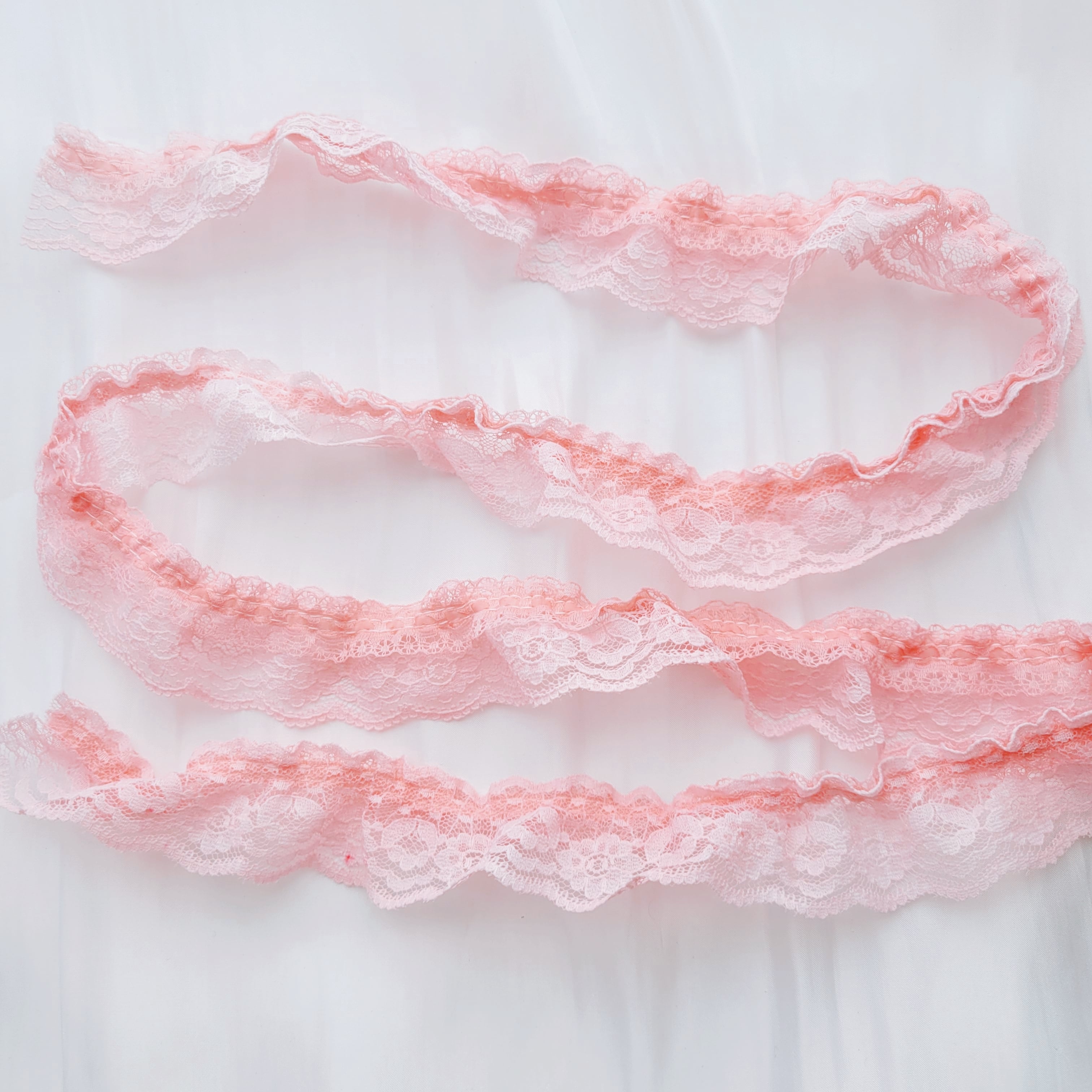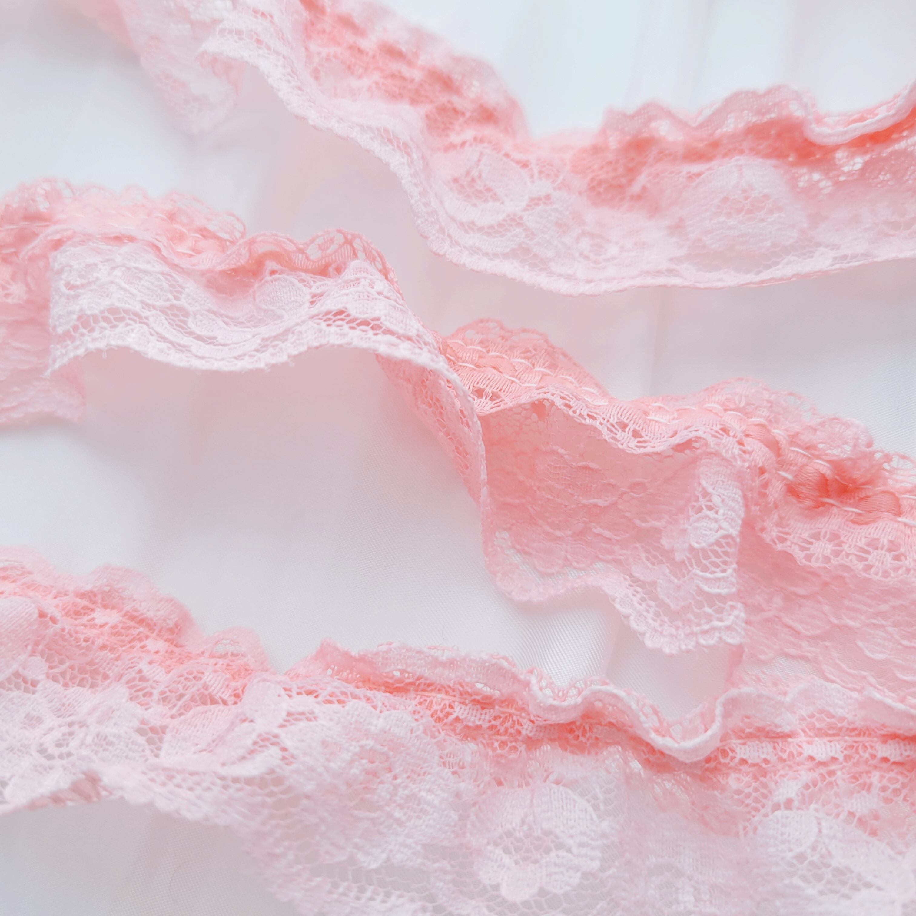 手染めレース(10)桜ピンク 1m 新生活 入学準備 レッスンバッグ ダブルフリル