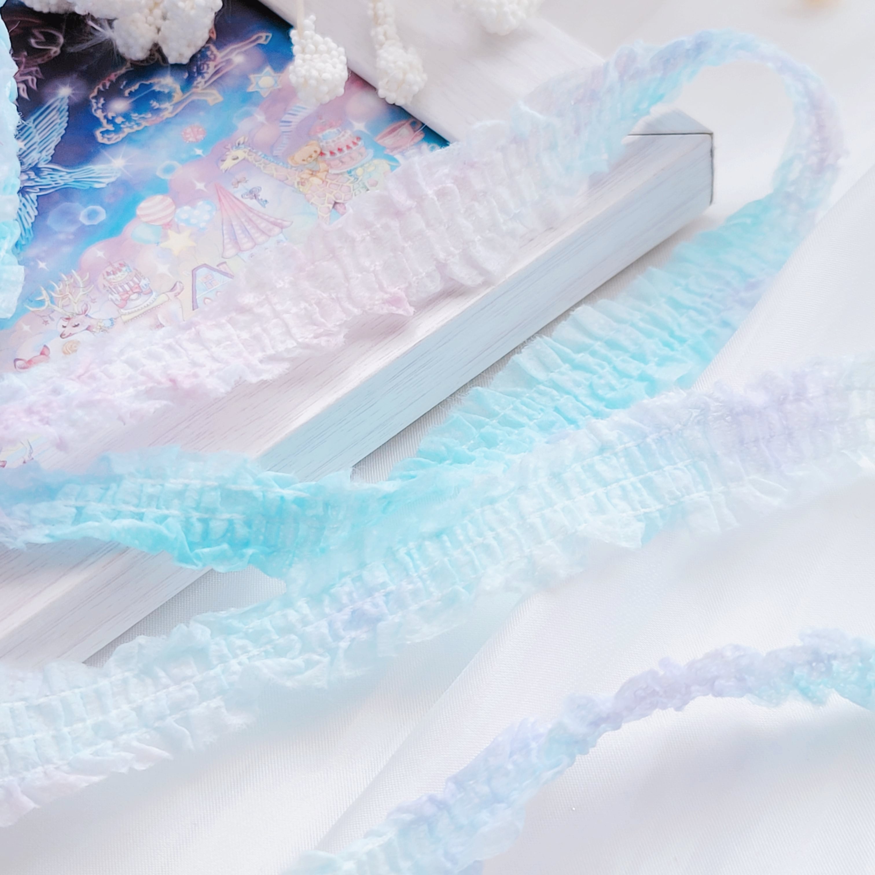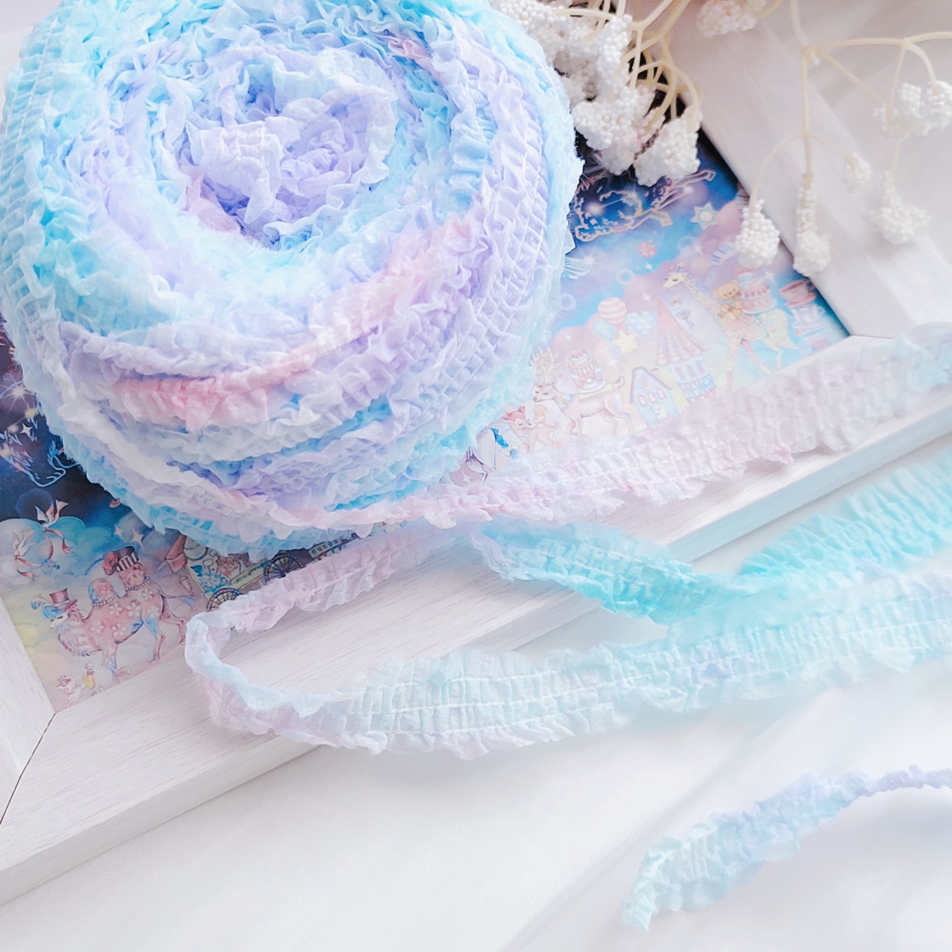 手染めフリル(45)20g 淡ブルーピンクパープル ワイドギャザーフリル 引き揃え糸に
