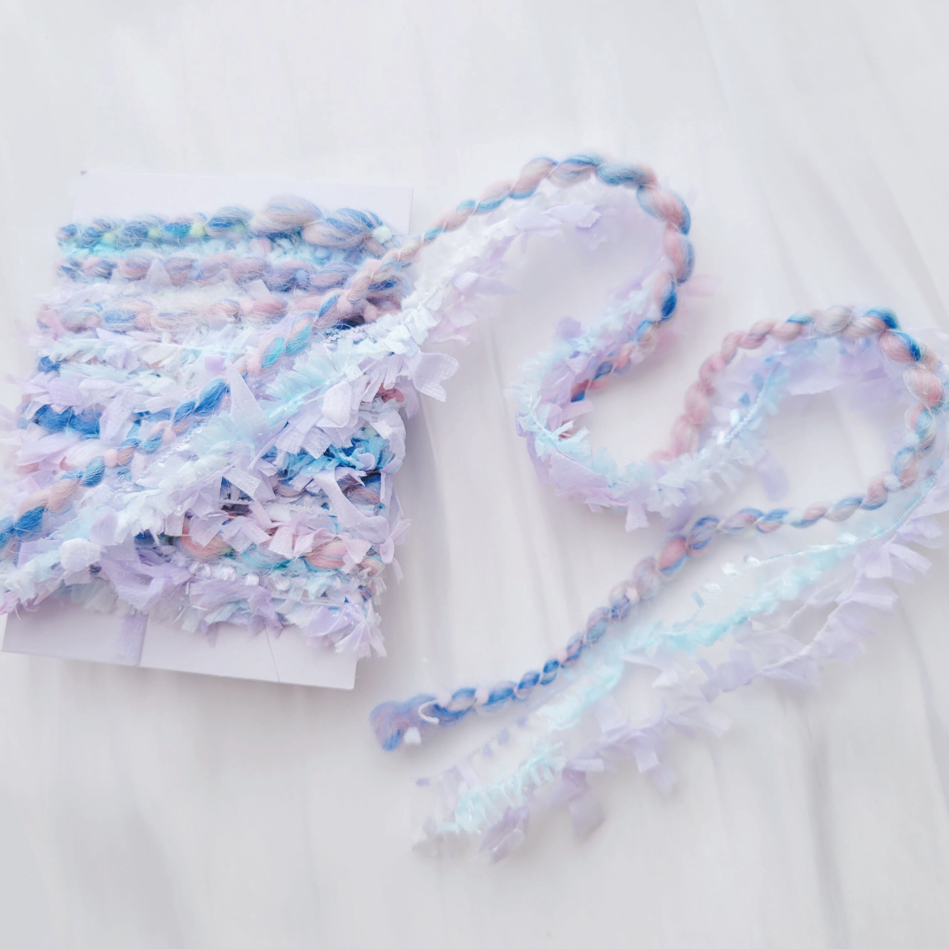 紡ぎ糸入り引き揃え糸(86)3m 手紡ぎ糸 アートヤーン 春を待つアクアマリン