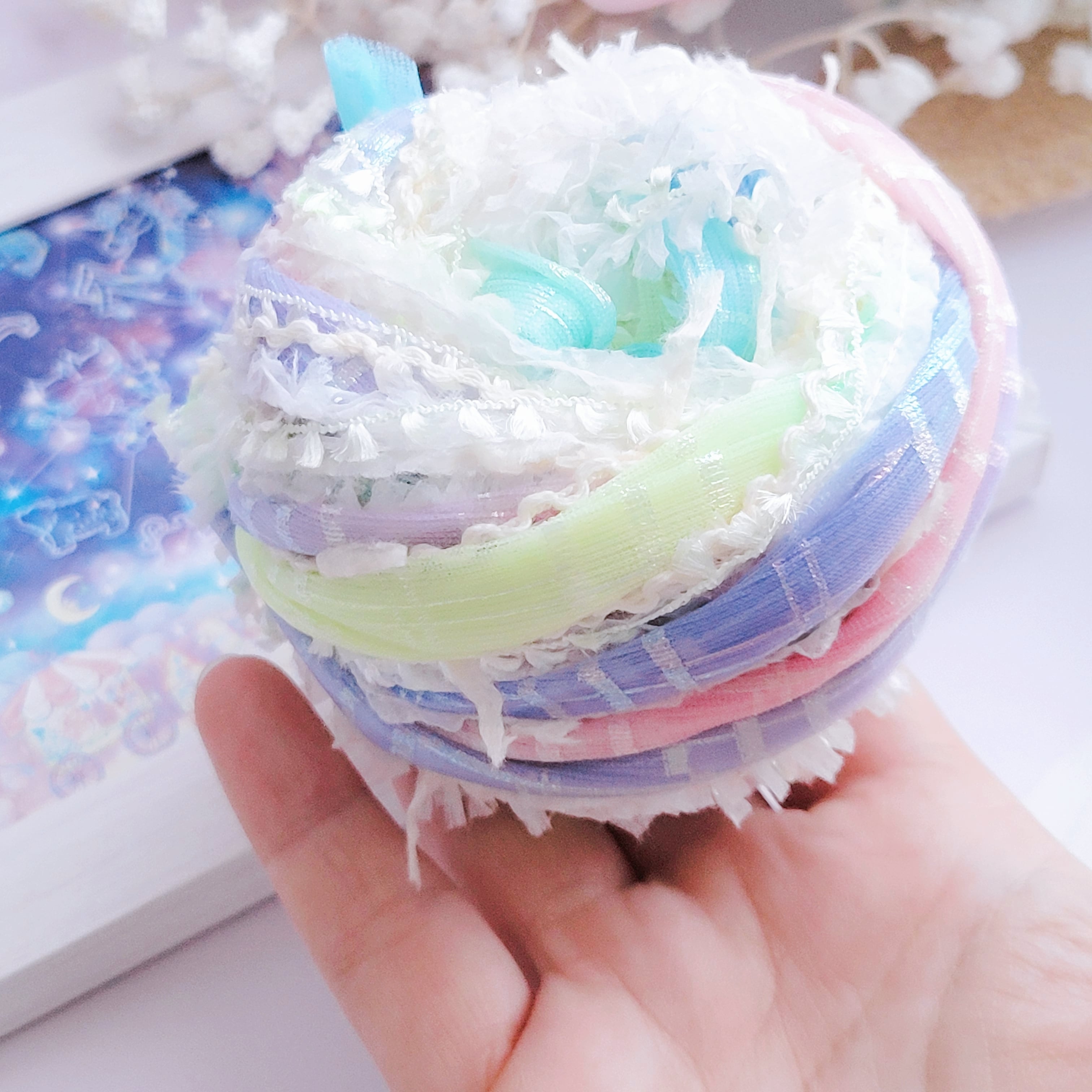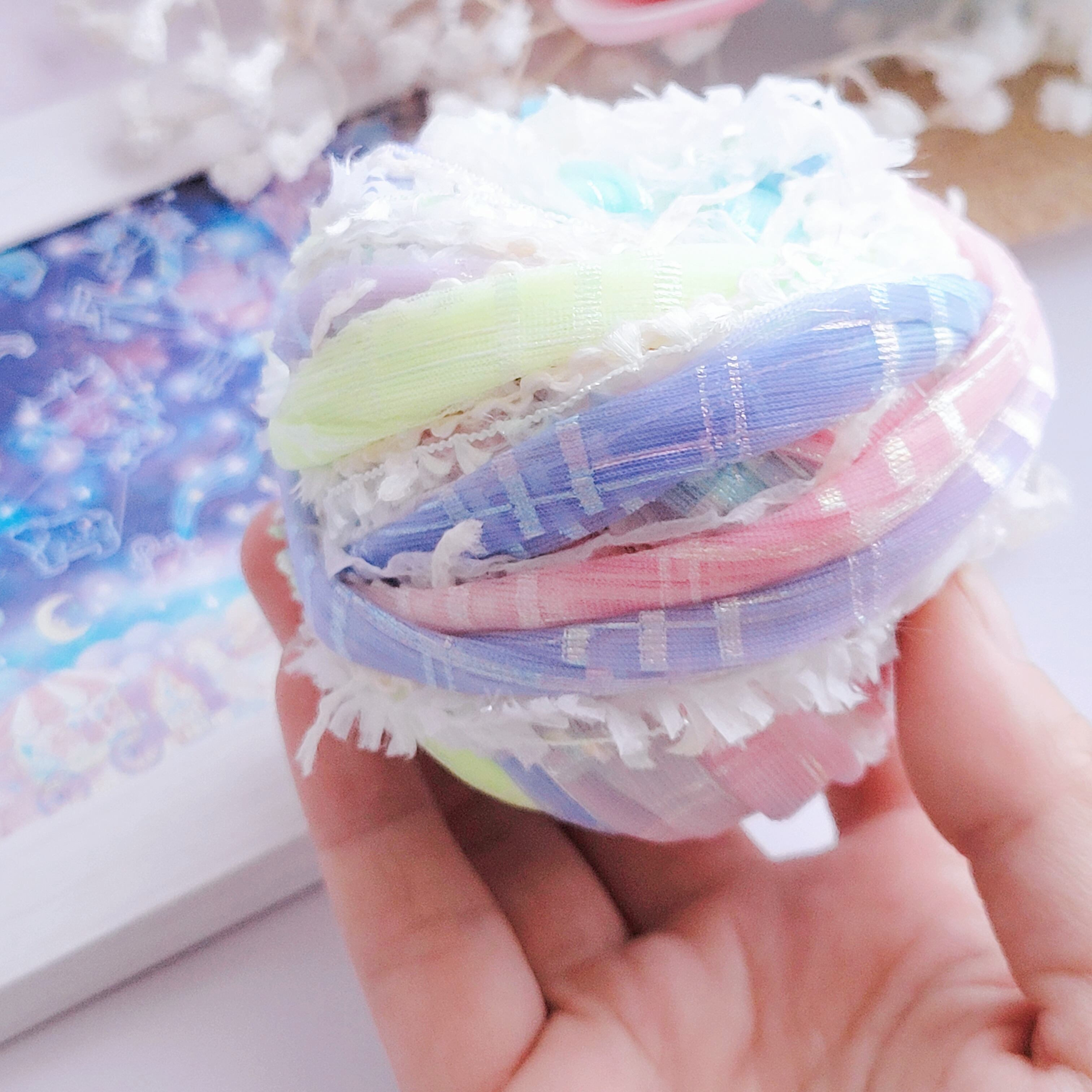 特別な素材や装飾糸を重ね、