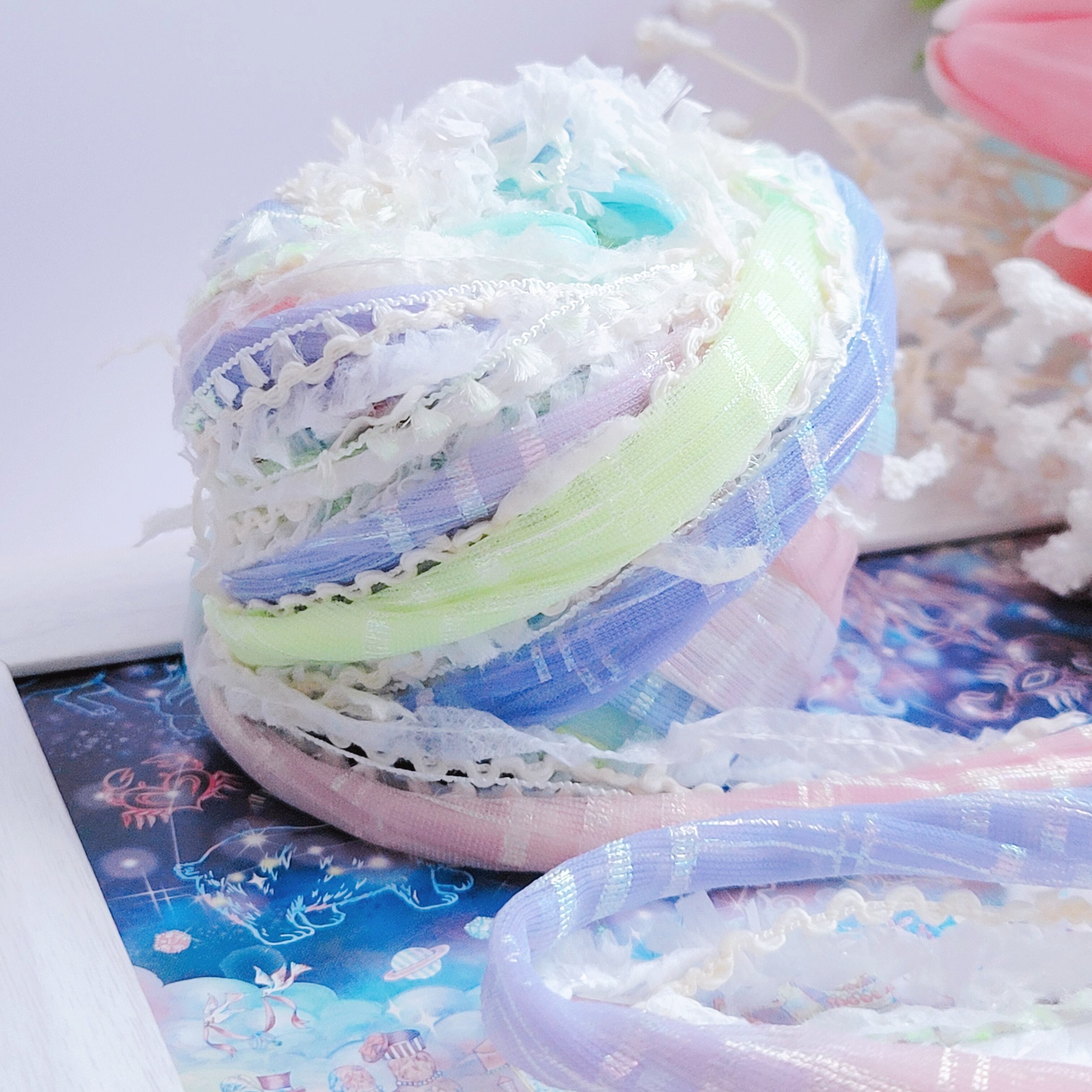 光をやわらかく透かすチュールと、