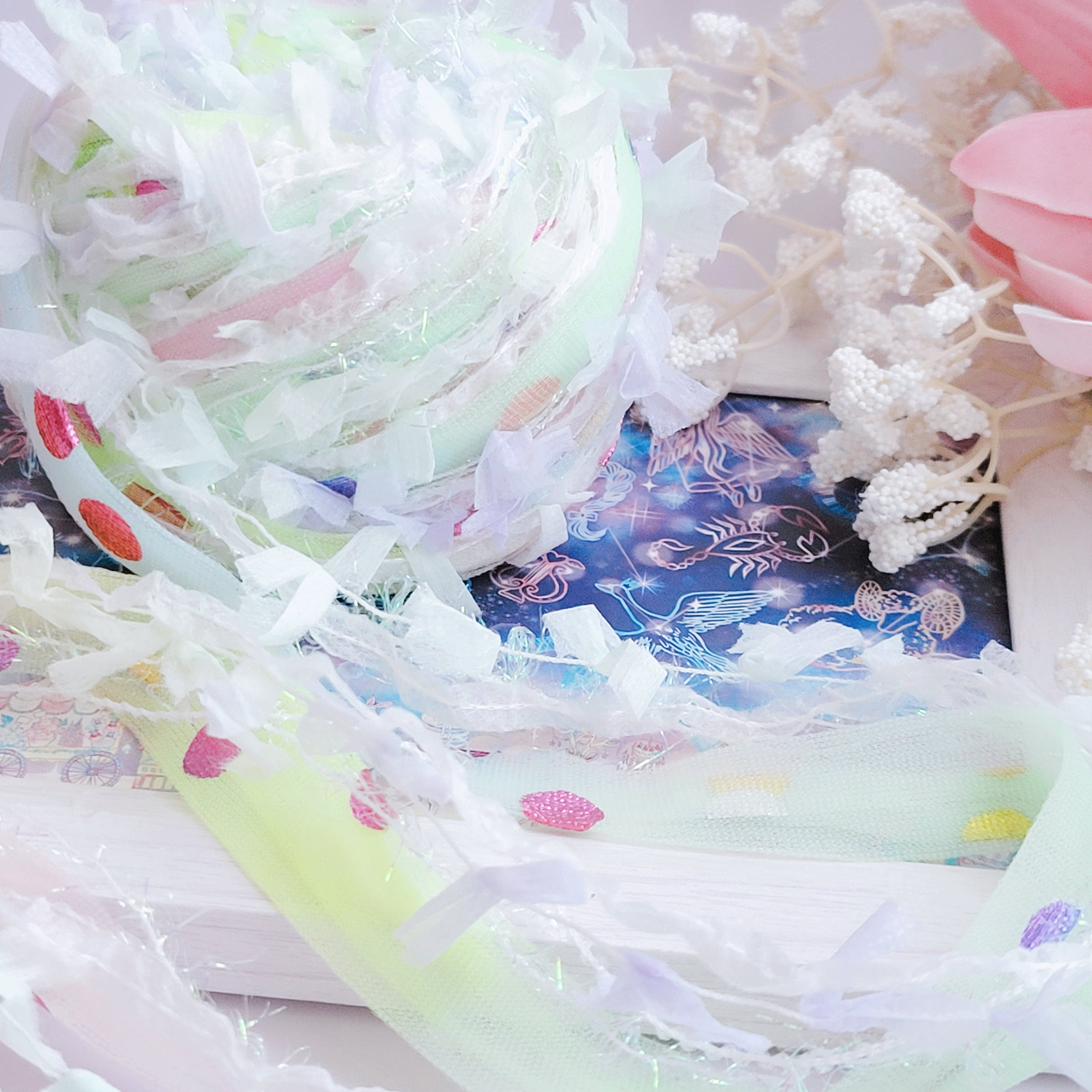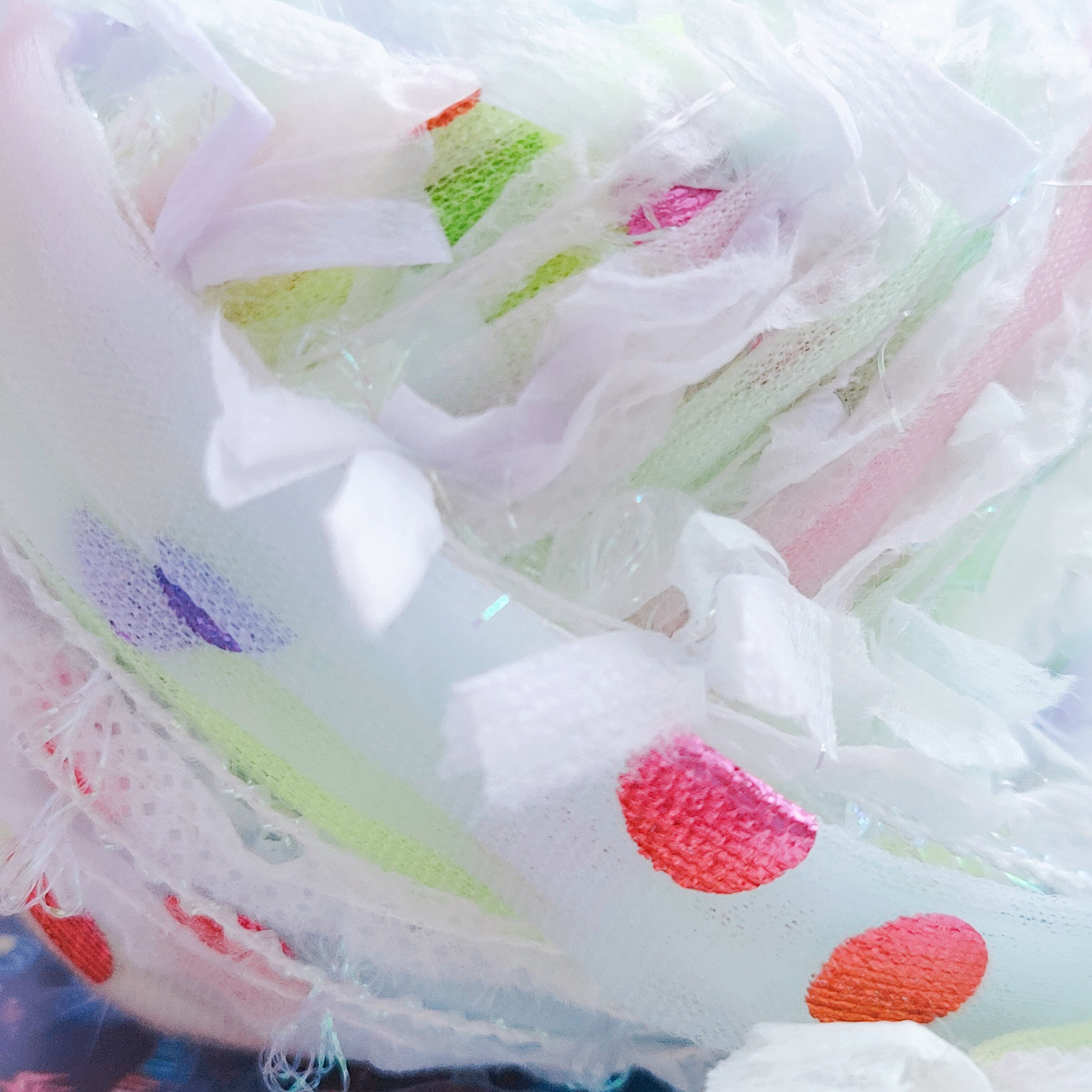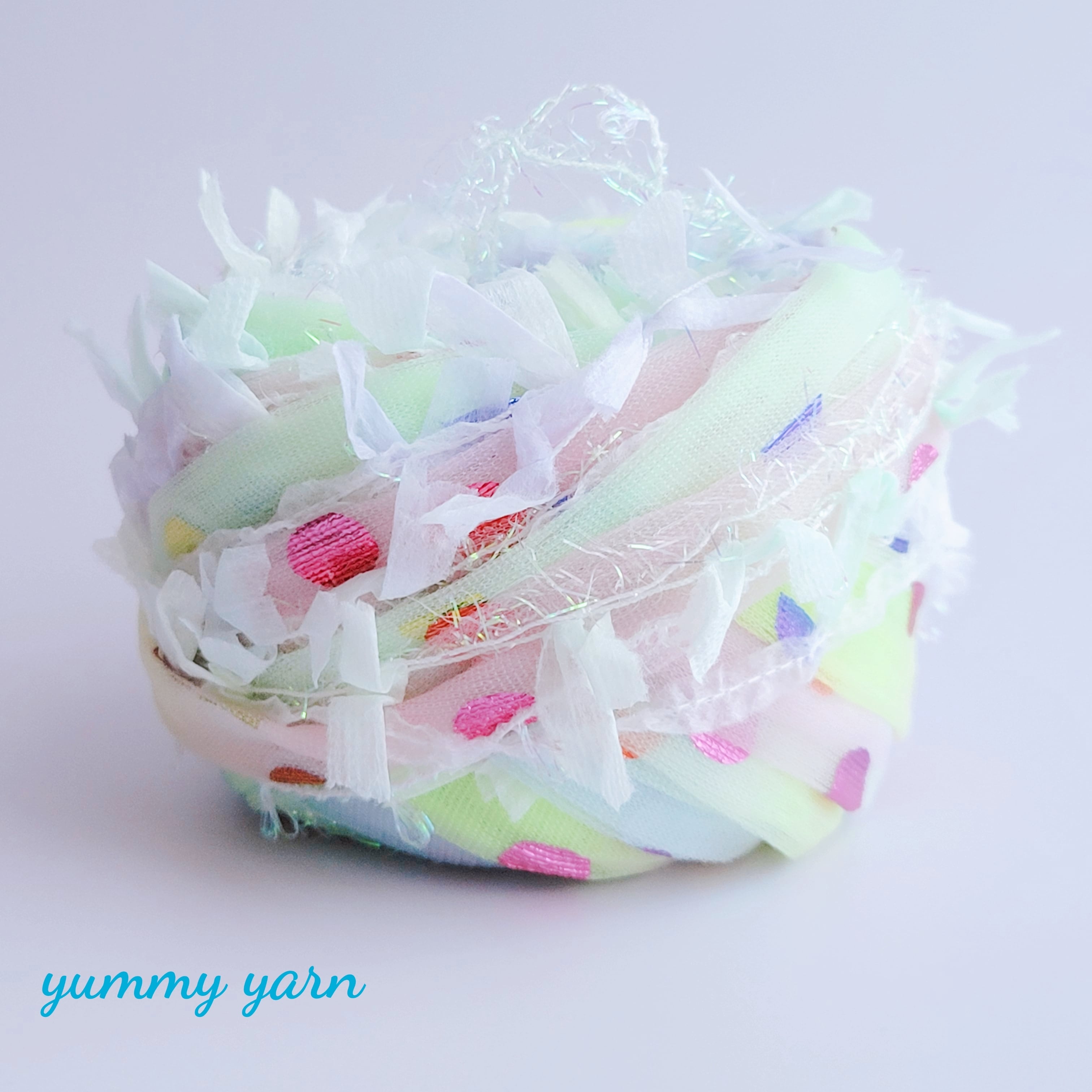 ドリームコンフェッティ(481)20g チュール入り引き揃え糸 プレシャスライン カラフルドットチュール