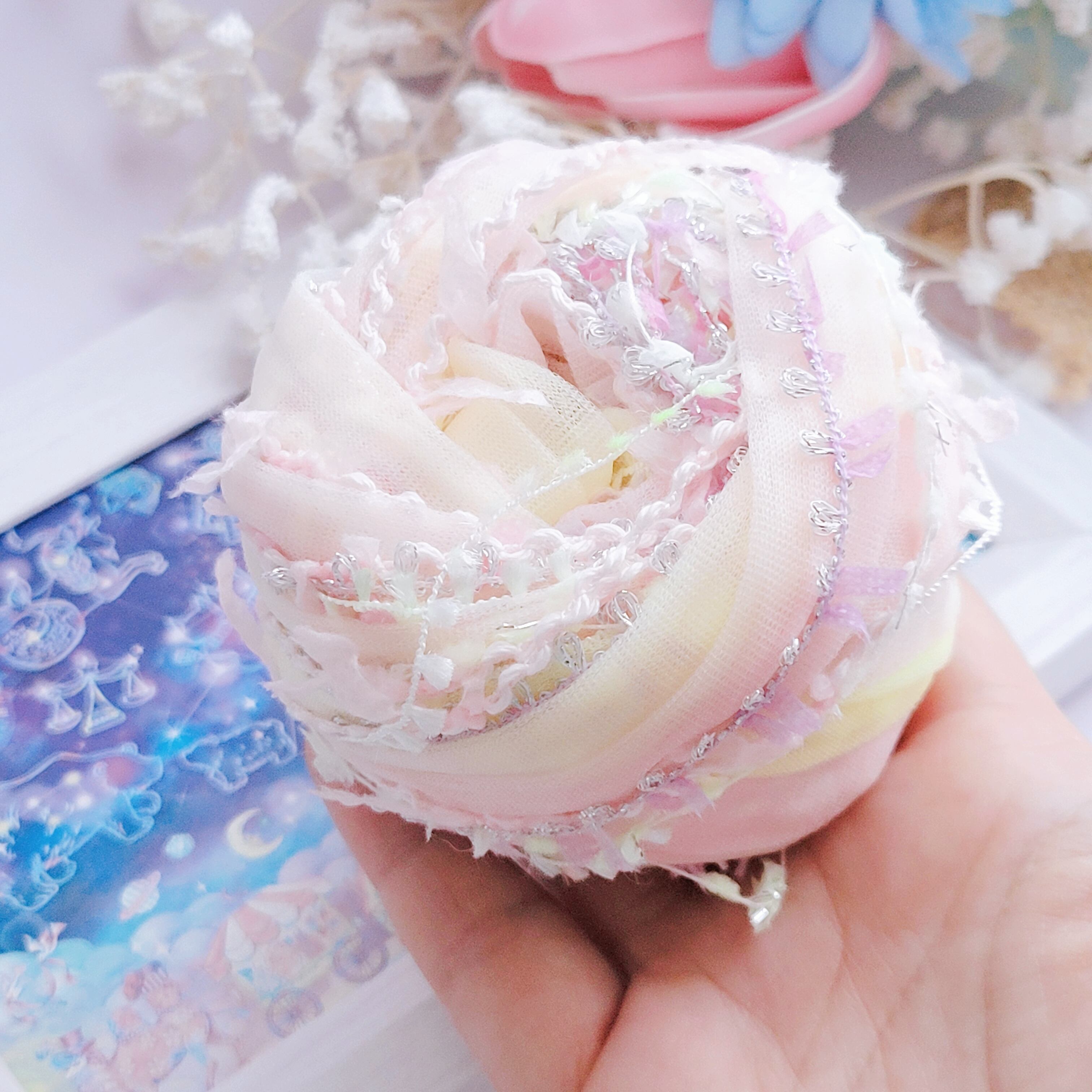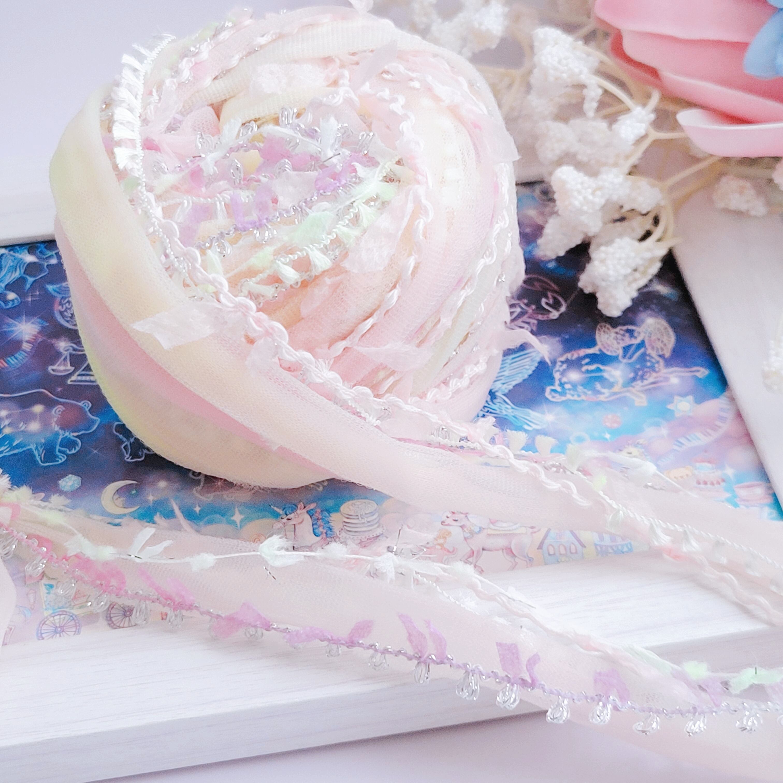 ピュア・ヴェール(483)20g チュール入り引き揃え糸 プレシャスライン ピンクイエロー