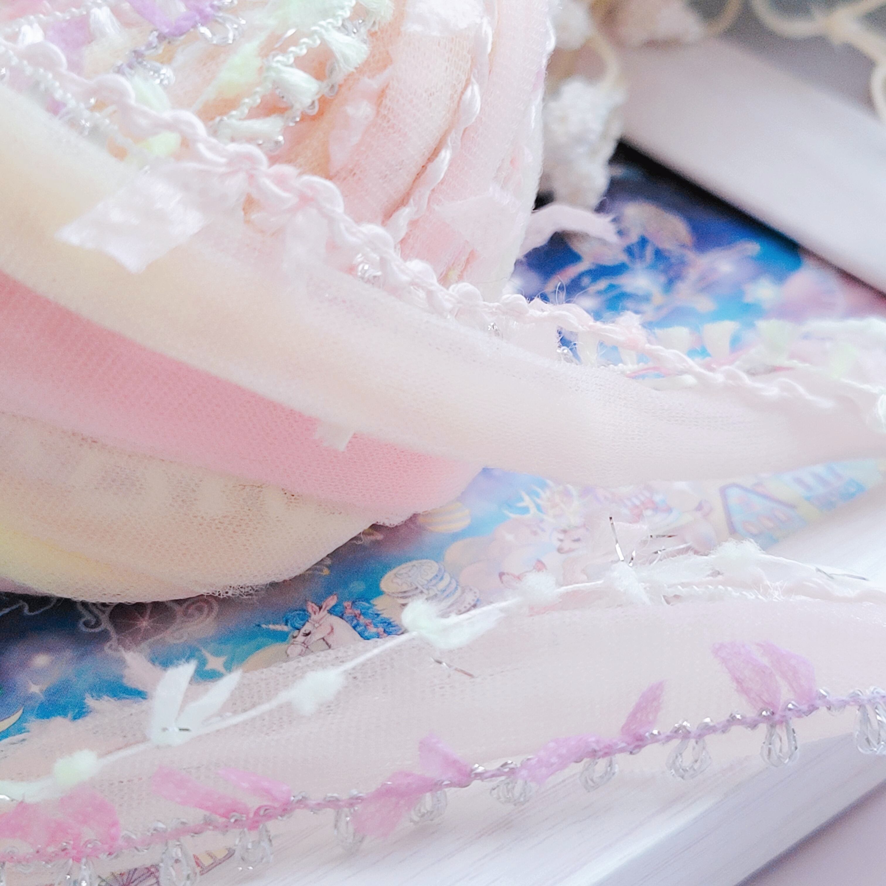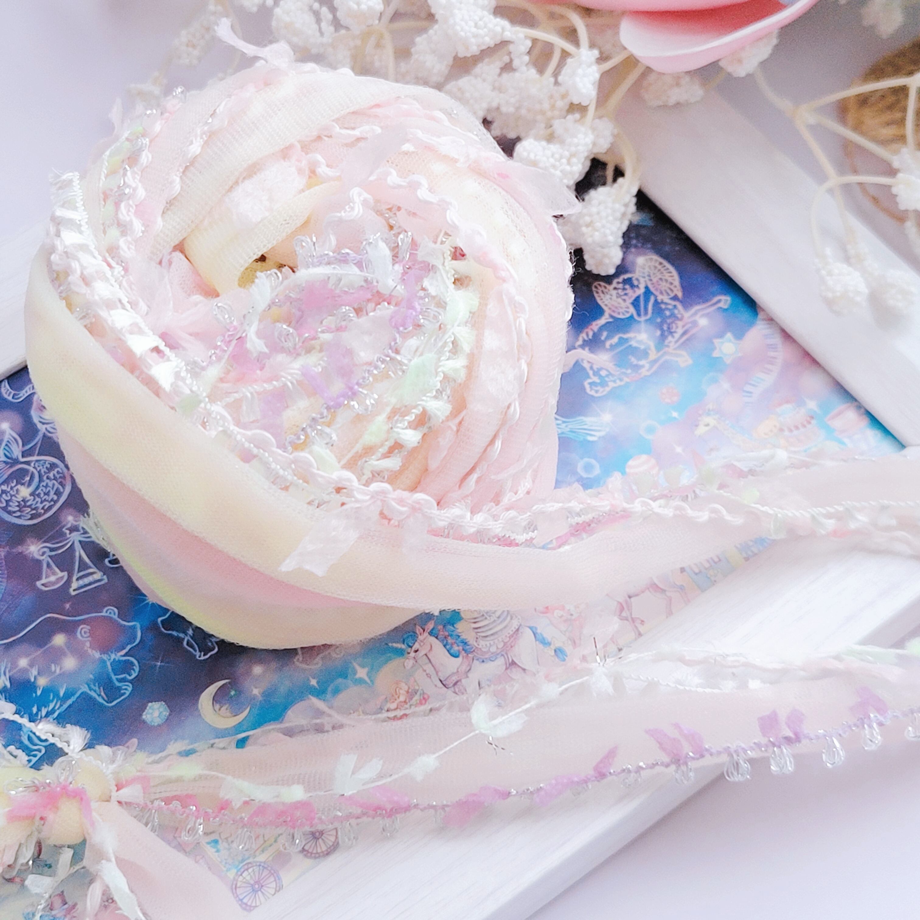 光をやわらかく透かすチュールと、