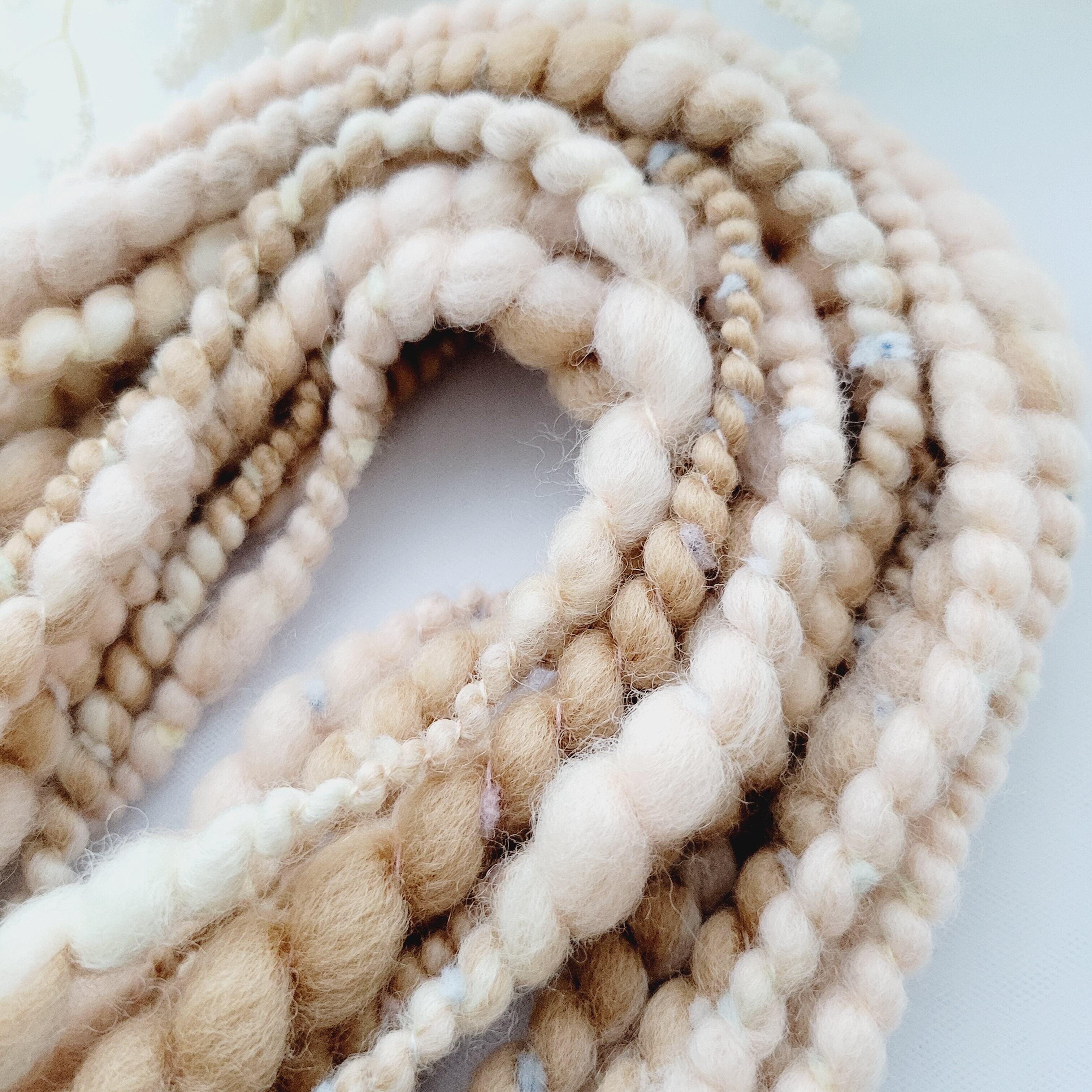 ・手紡ぎならではのムラや凹凸、太さの変化があります。