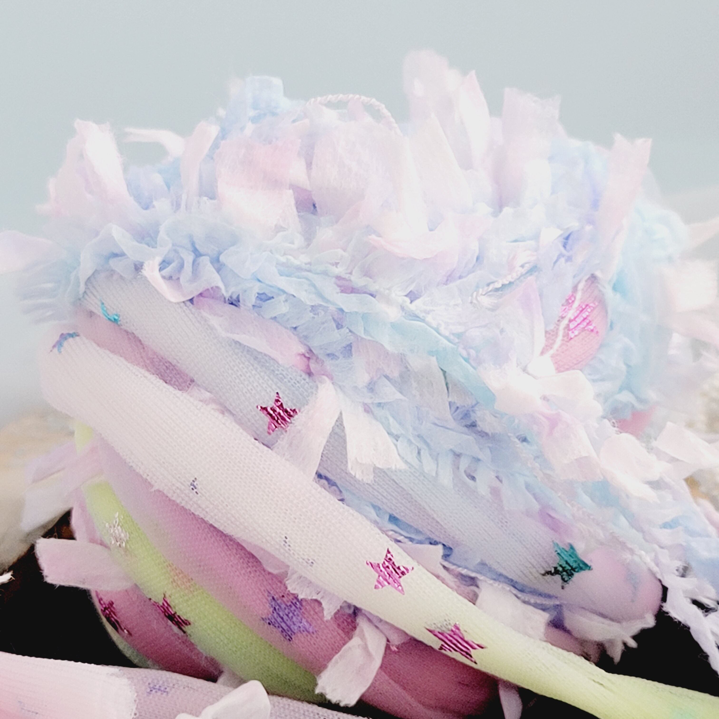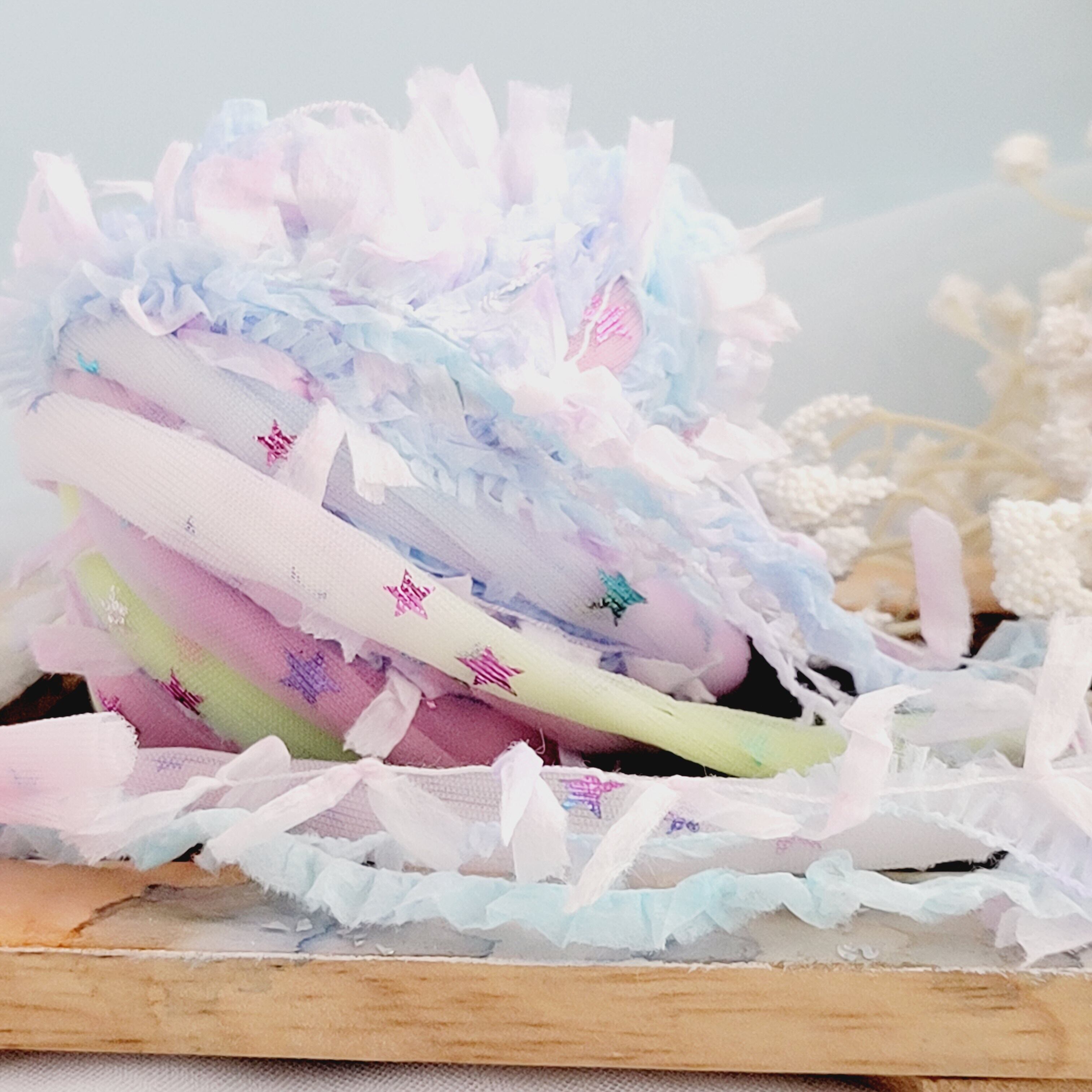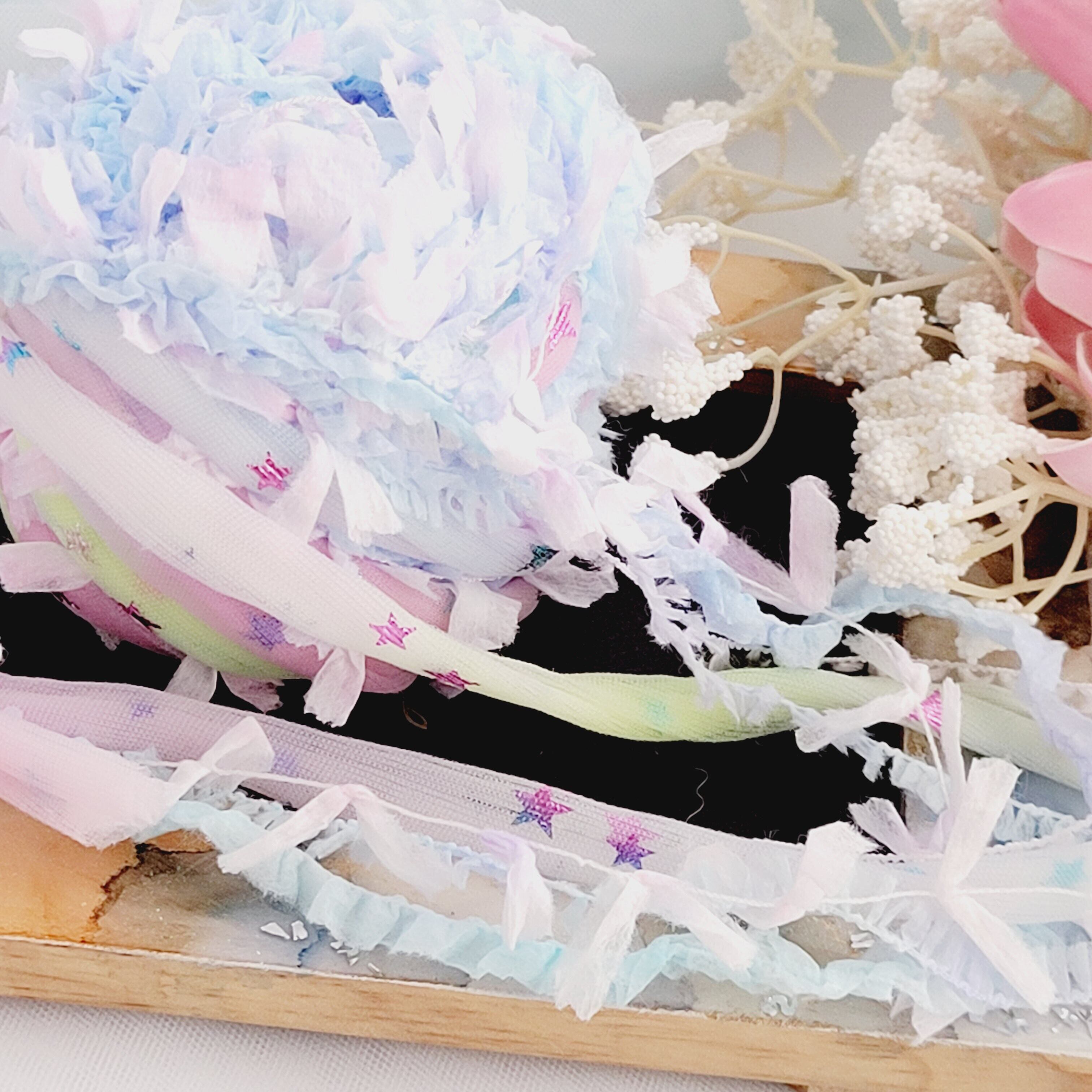 きらめくチュール、レース、フリル、手紡ぎ糸…