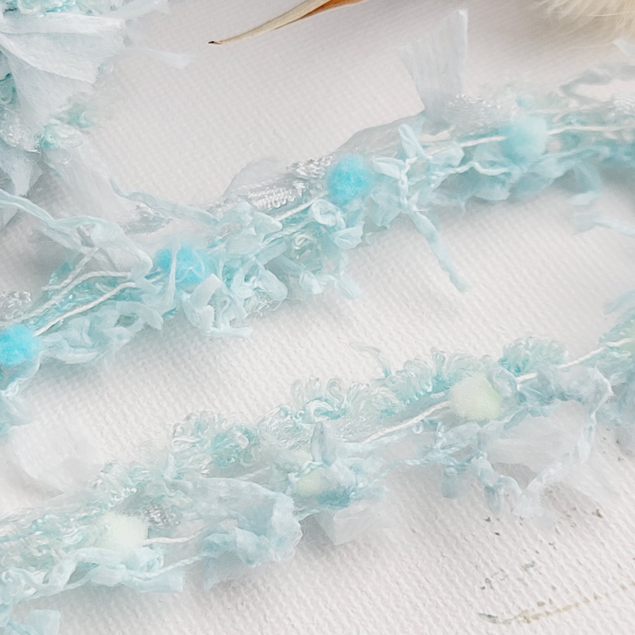 柔らかいファンシーヤーンやラメ糸、レースリボンなど、