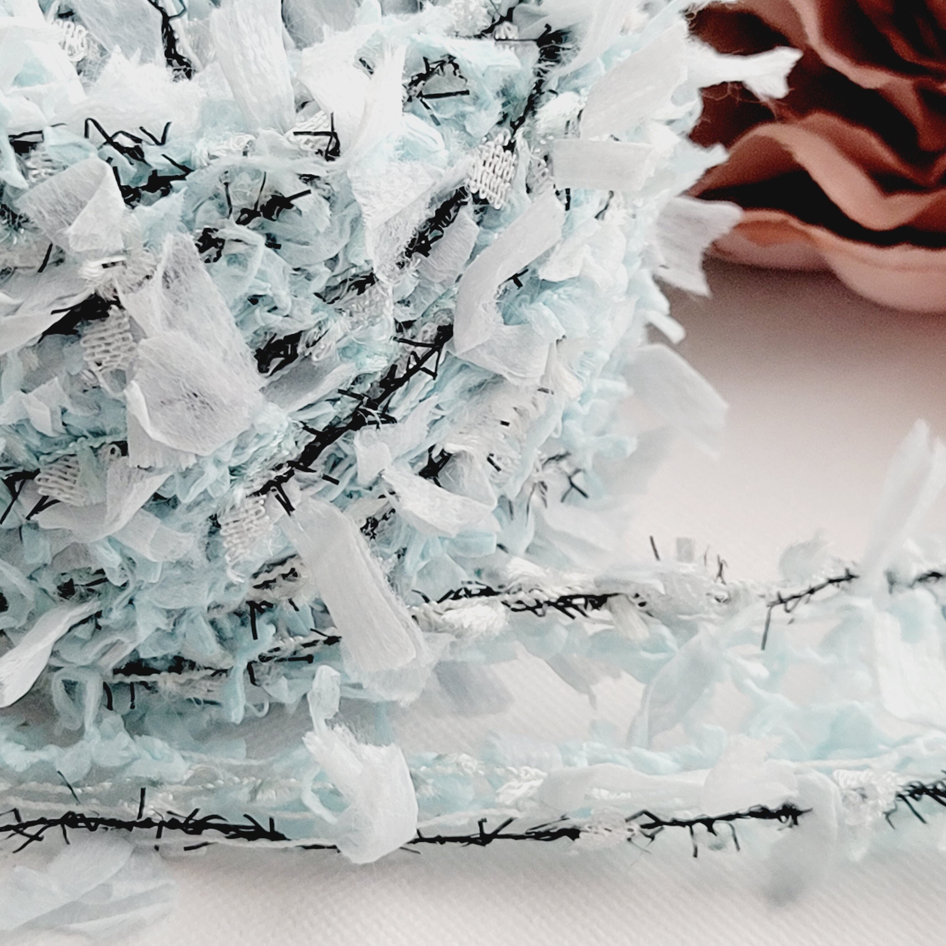 柔らかいファンシーヤーンやラメ糸、チュール、レースリボンなど、