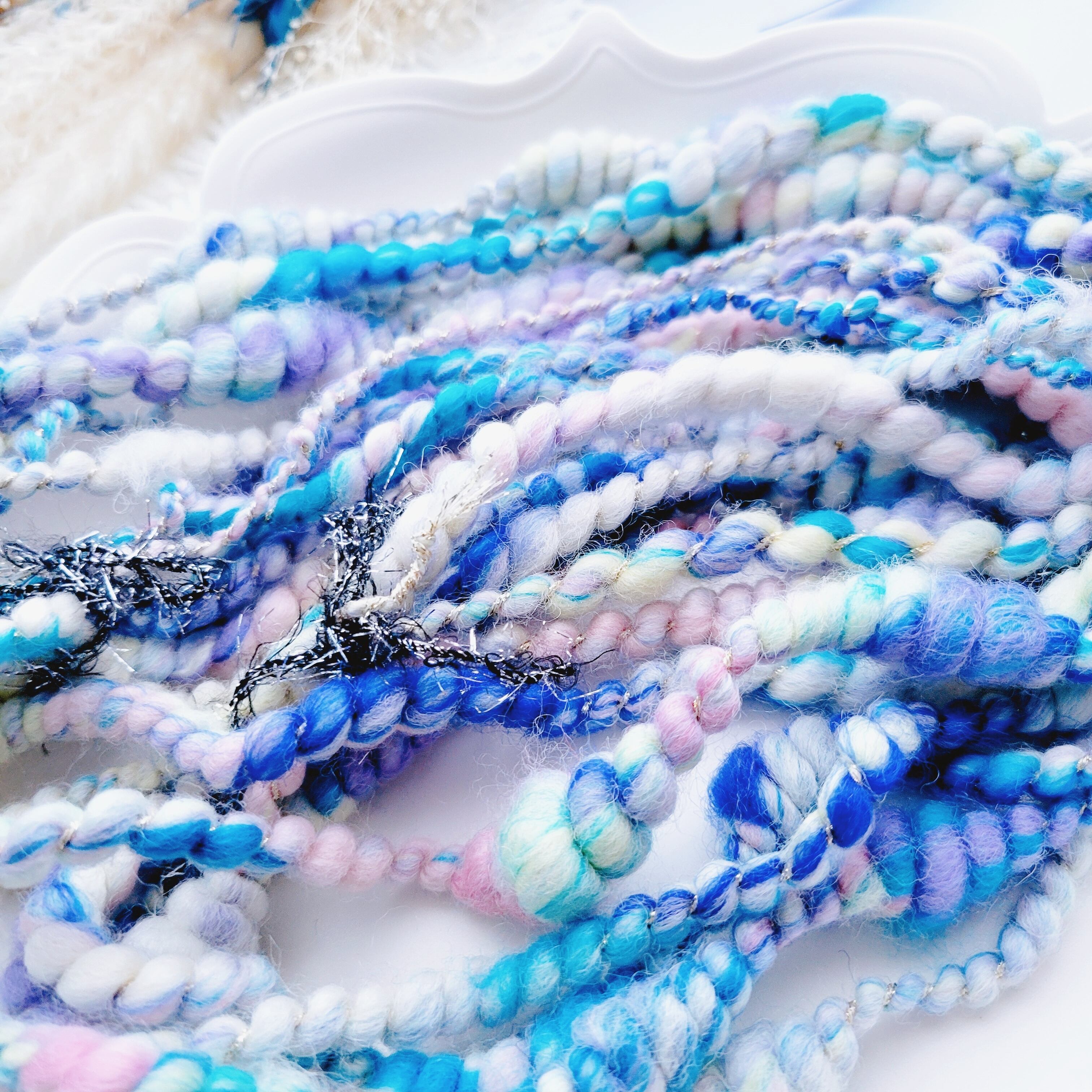 (45)ブレンド羊毛アートヤーン 46g〈蒼の占星図〉コイル ブルーホワイト
