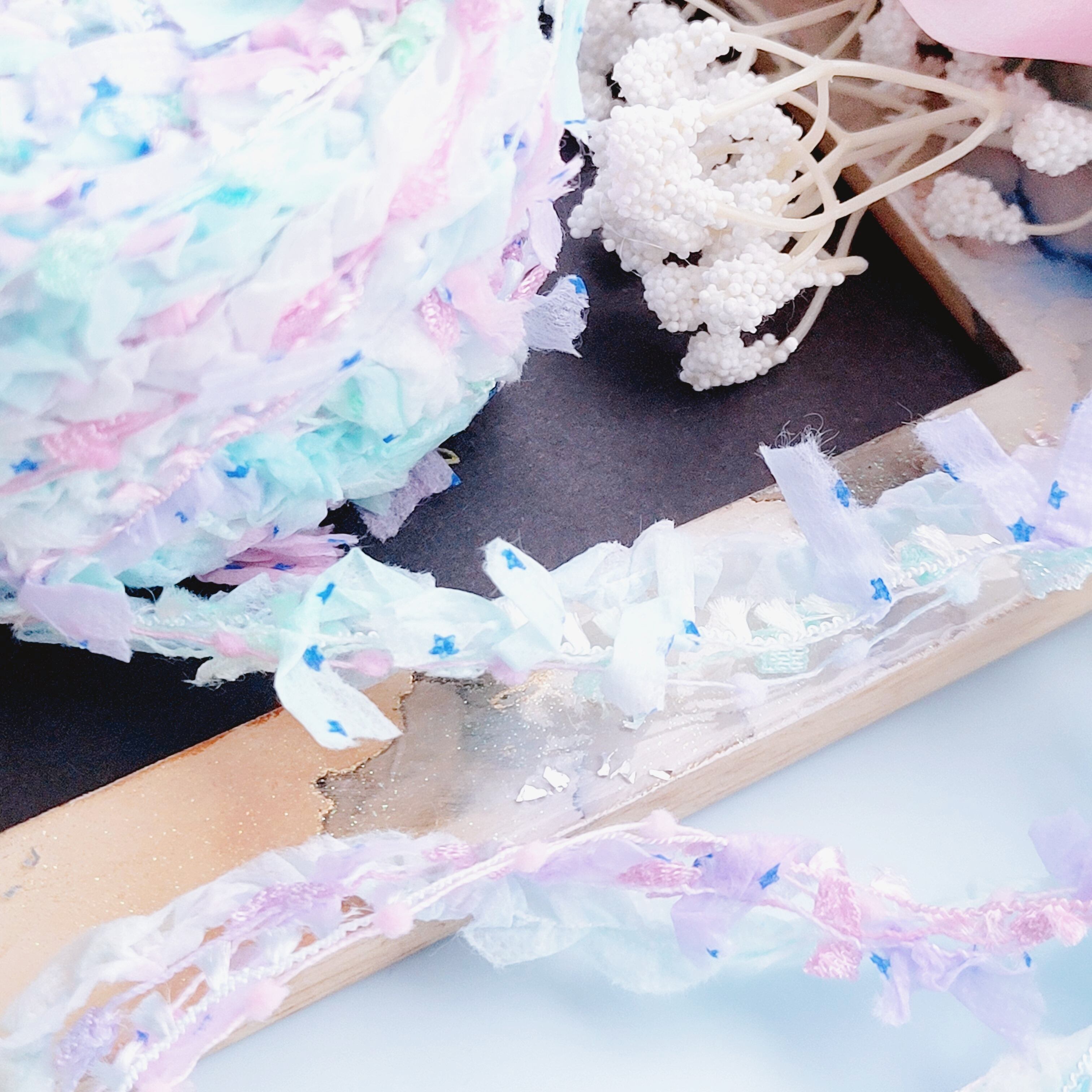 きらめくチュール、レース、フリル、手紡ぎ糸…