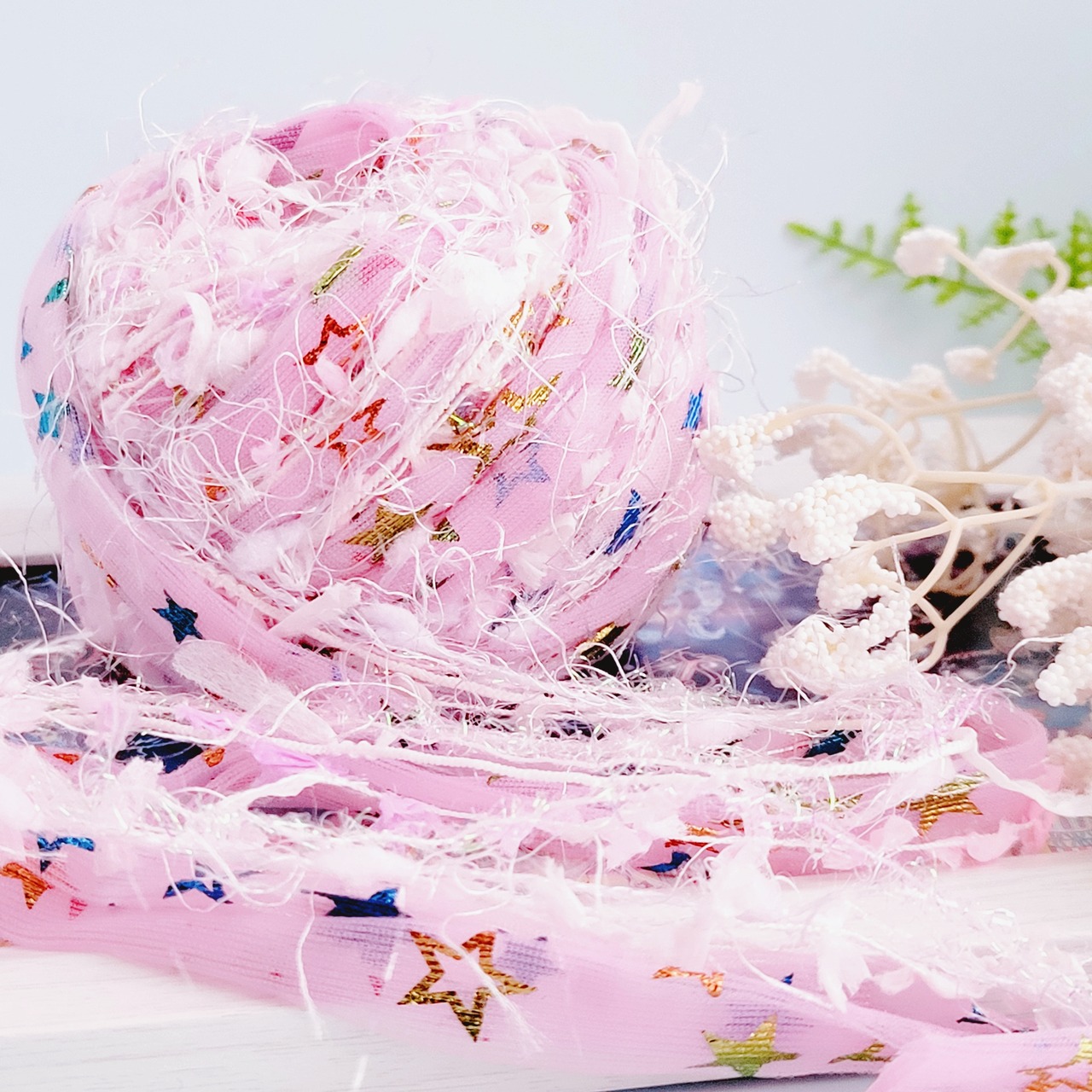 チュール入り引き揃え糸(242) 20g スターパーティ ピンク ラッピング