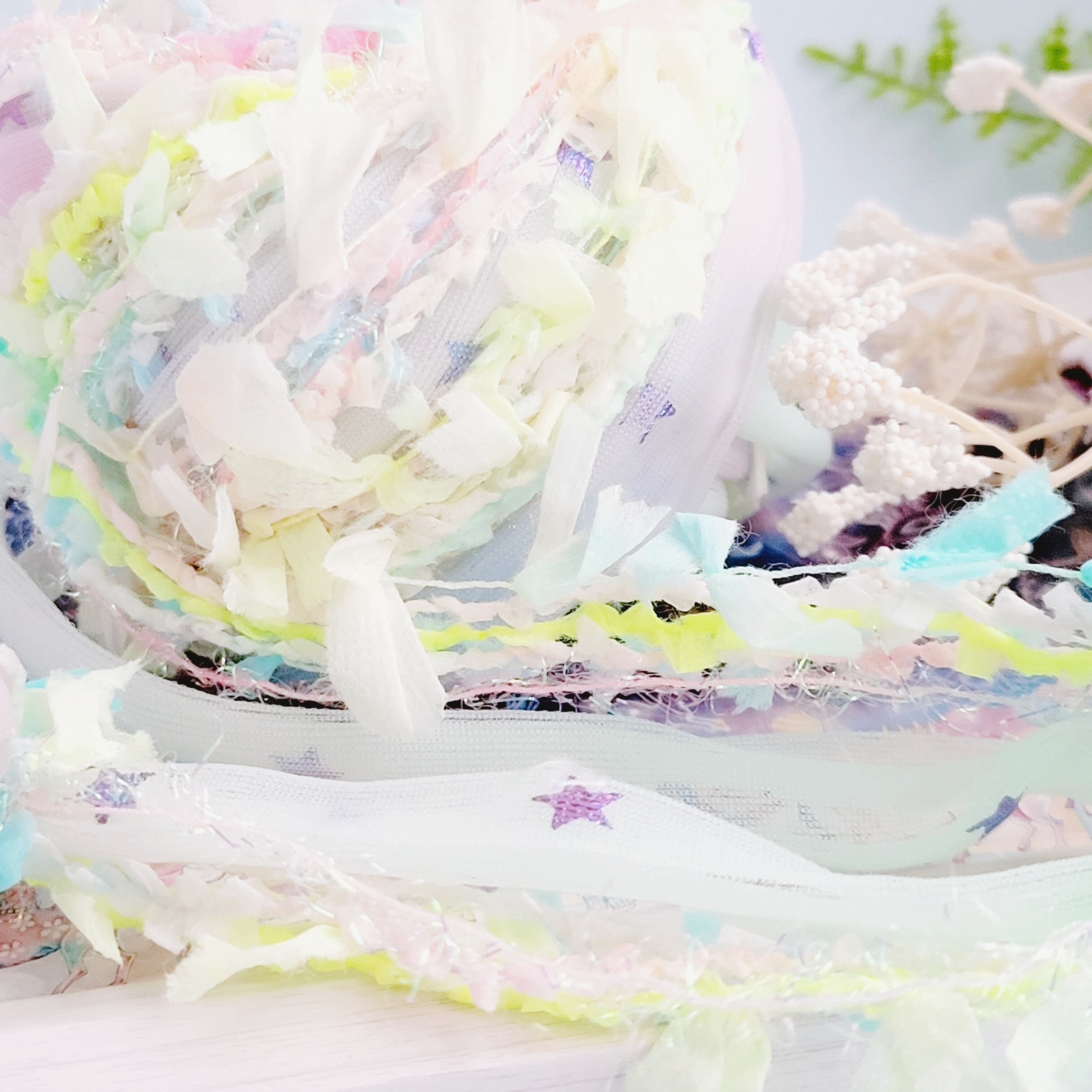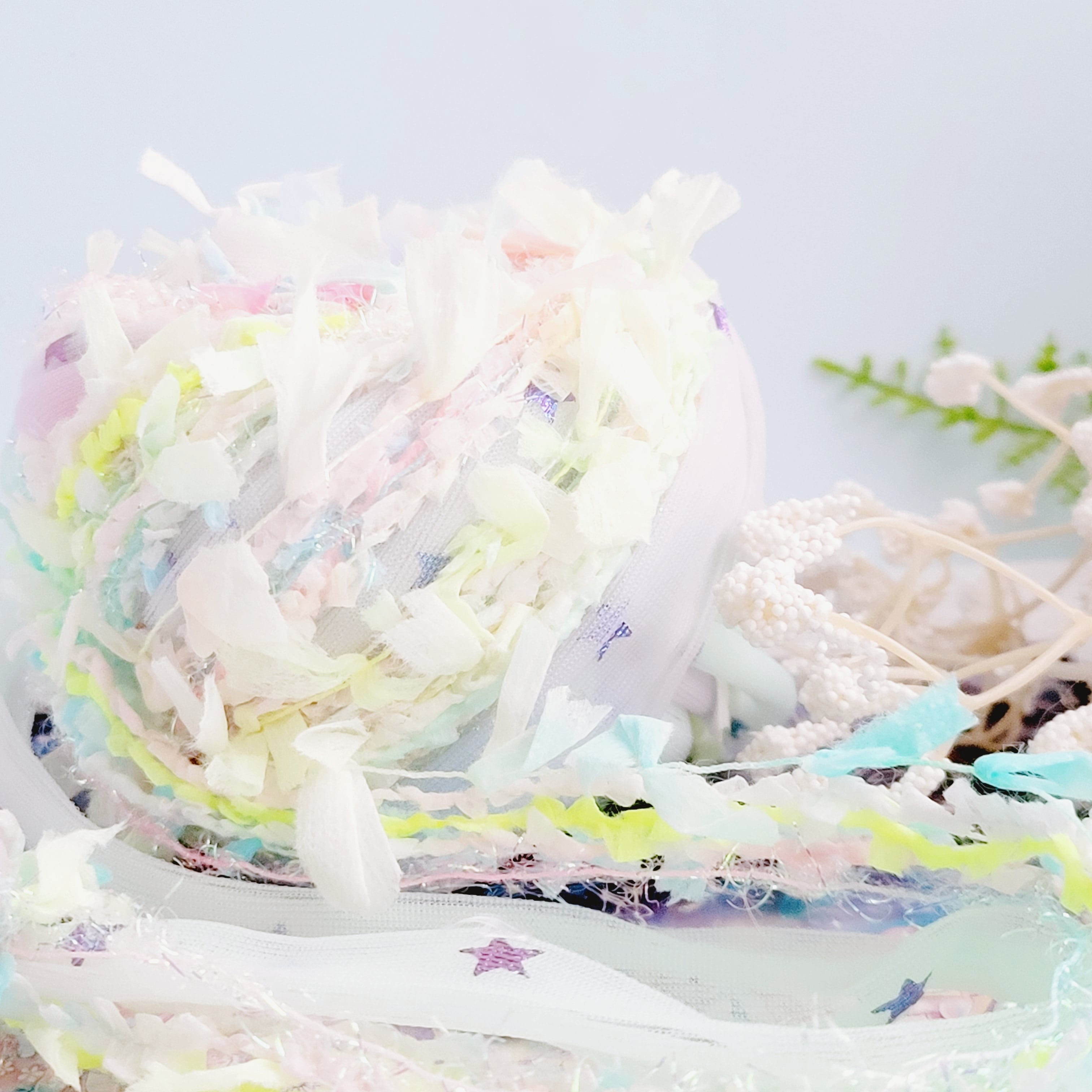 きらめくチュール、レース、フリル、手紡ぎ糸…