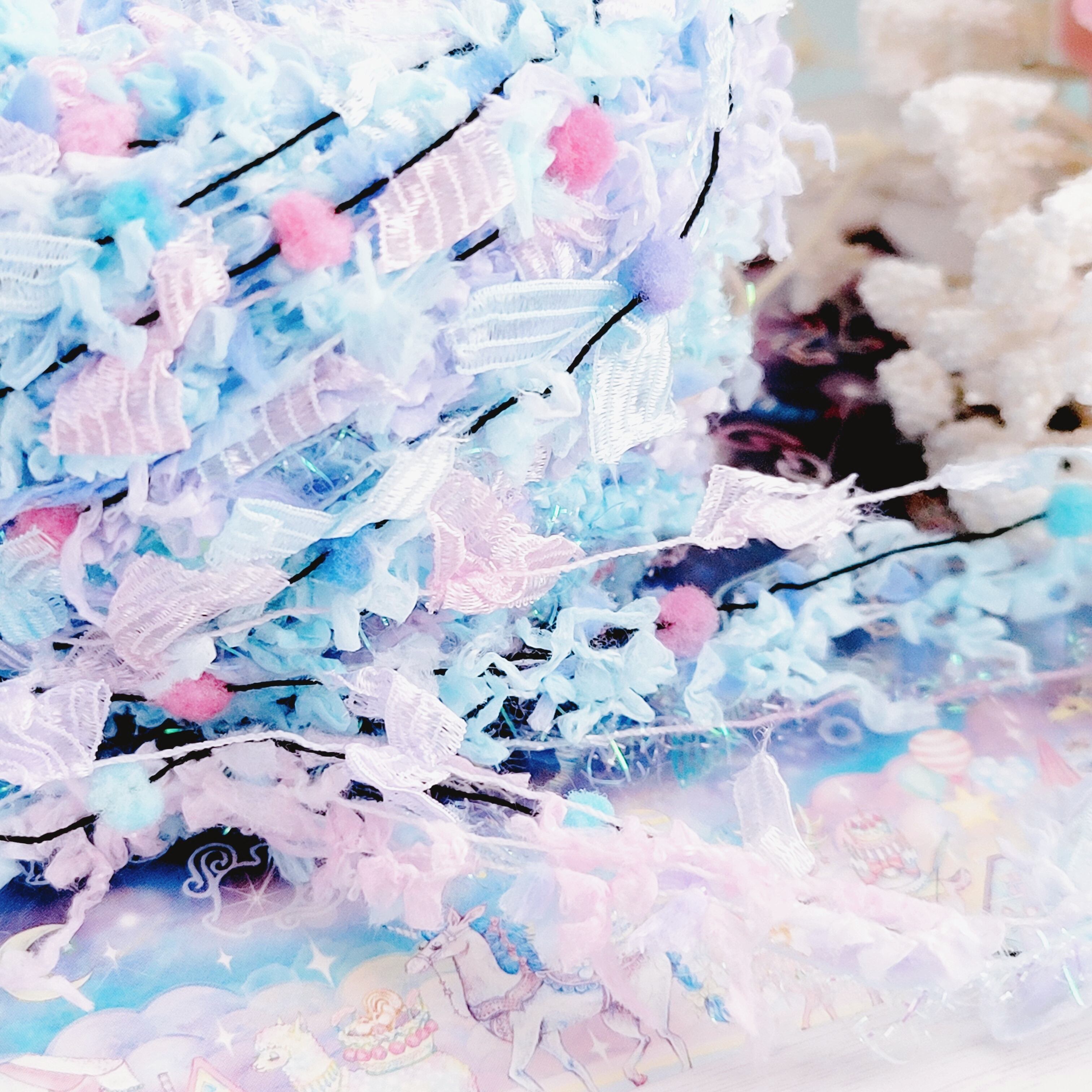 リボン、ふわもこ素材など、素材たちはまるで魔法道具みたい。