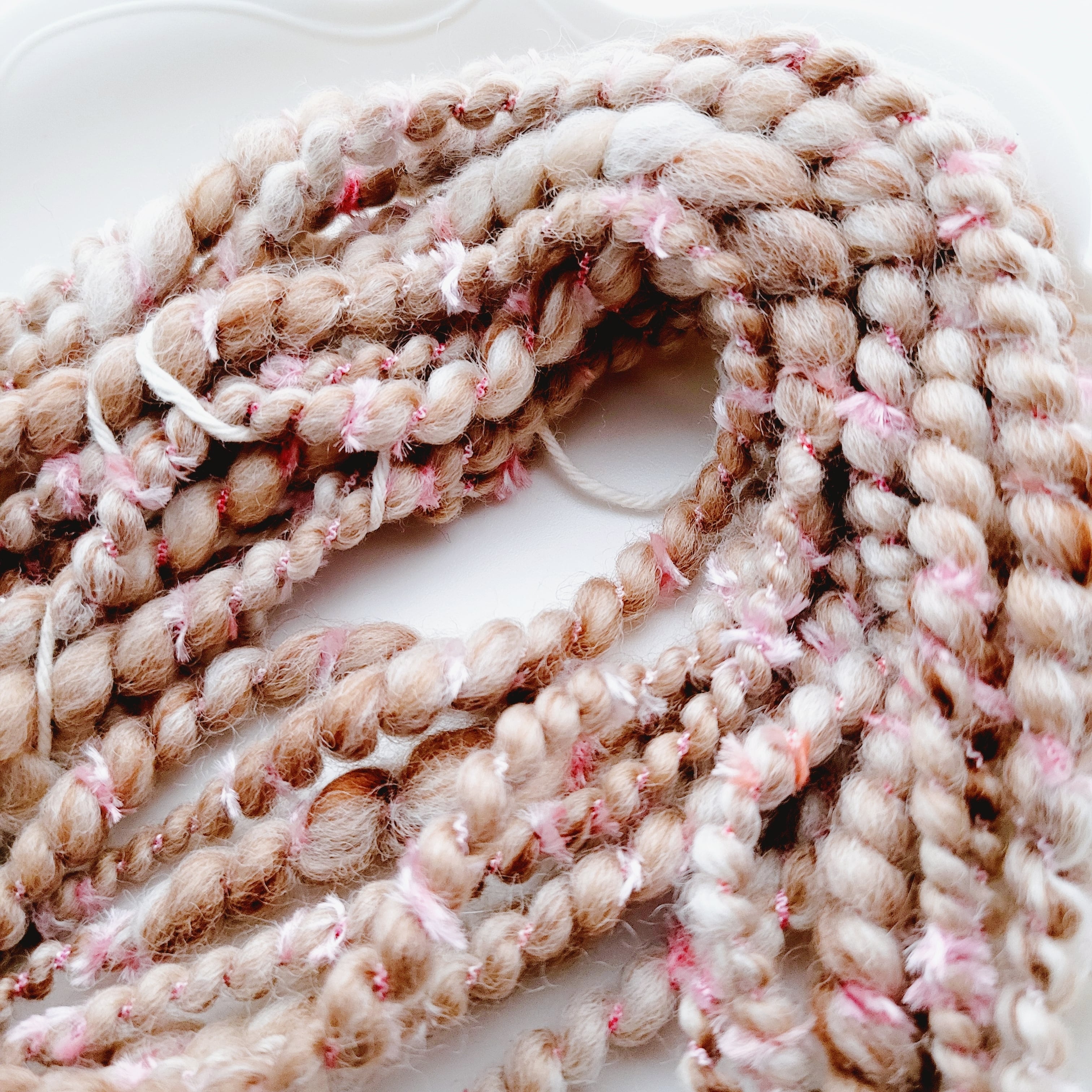 ・手紡ぎならではのムラや凹凸、太さの変化があります。